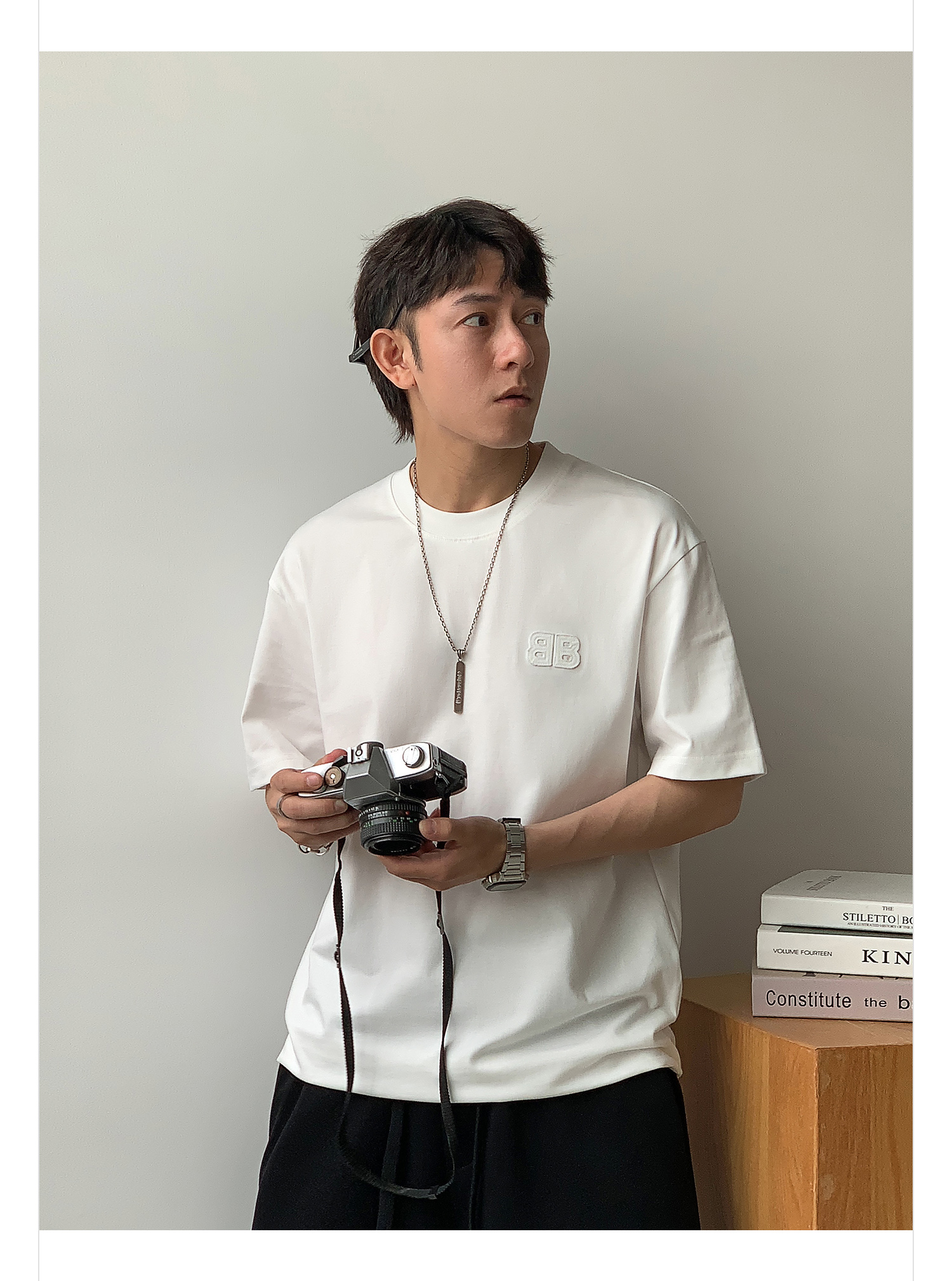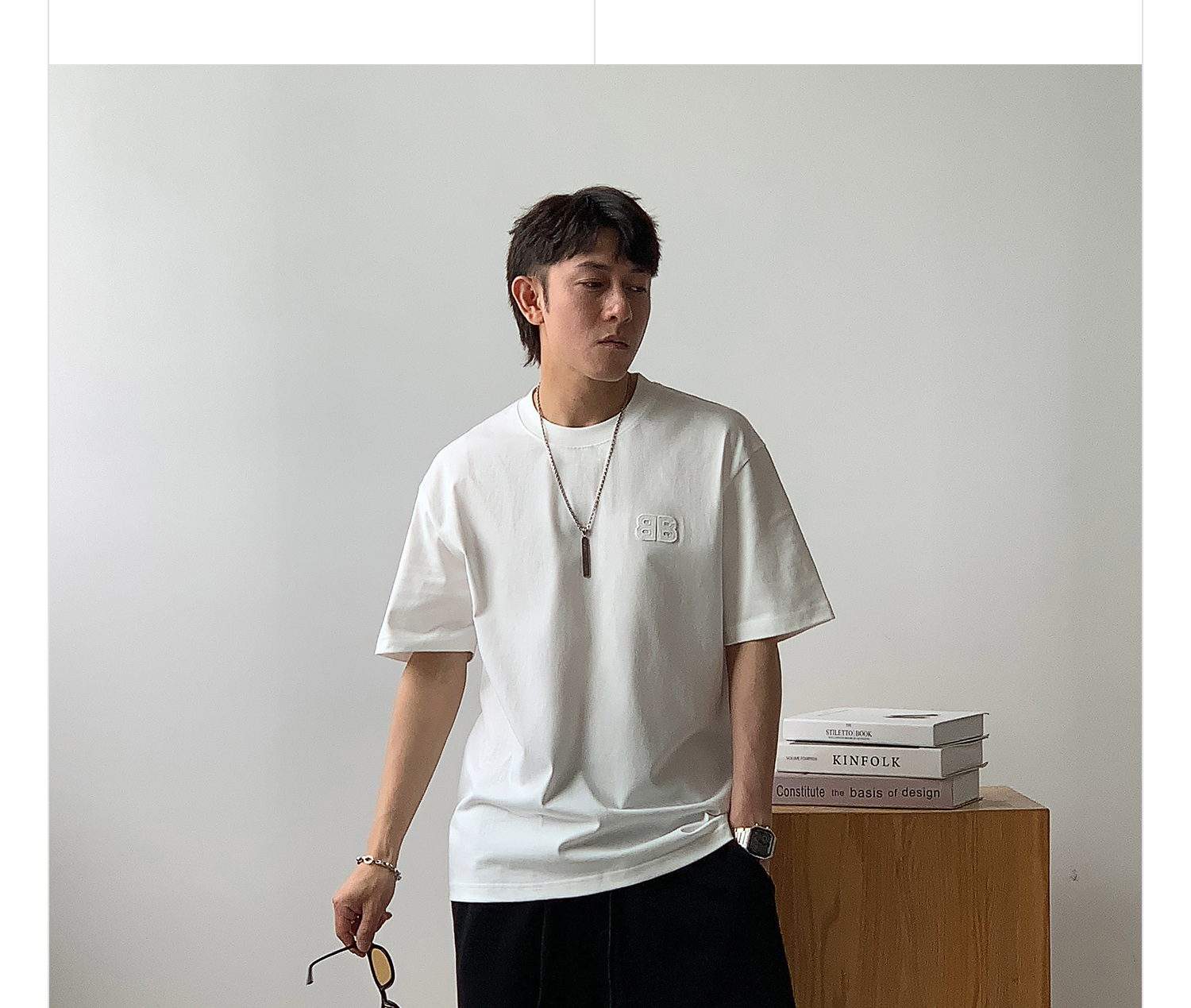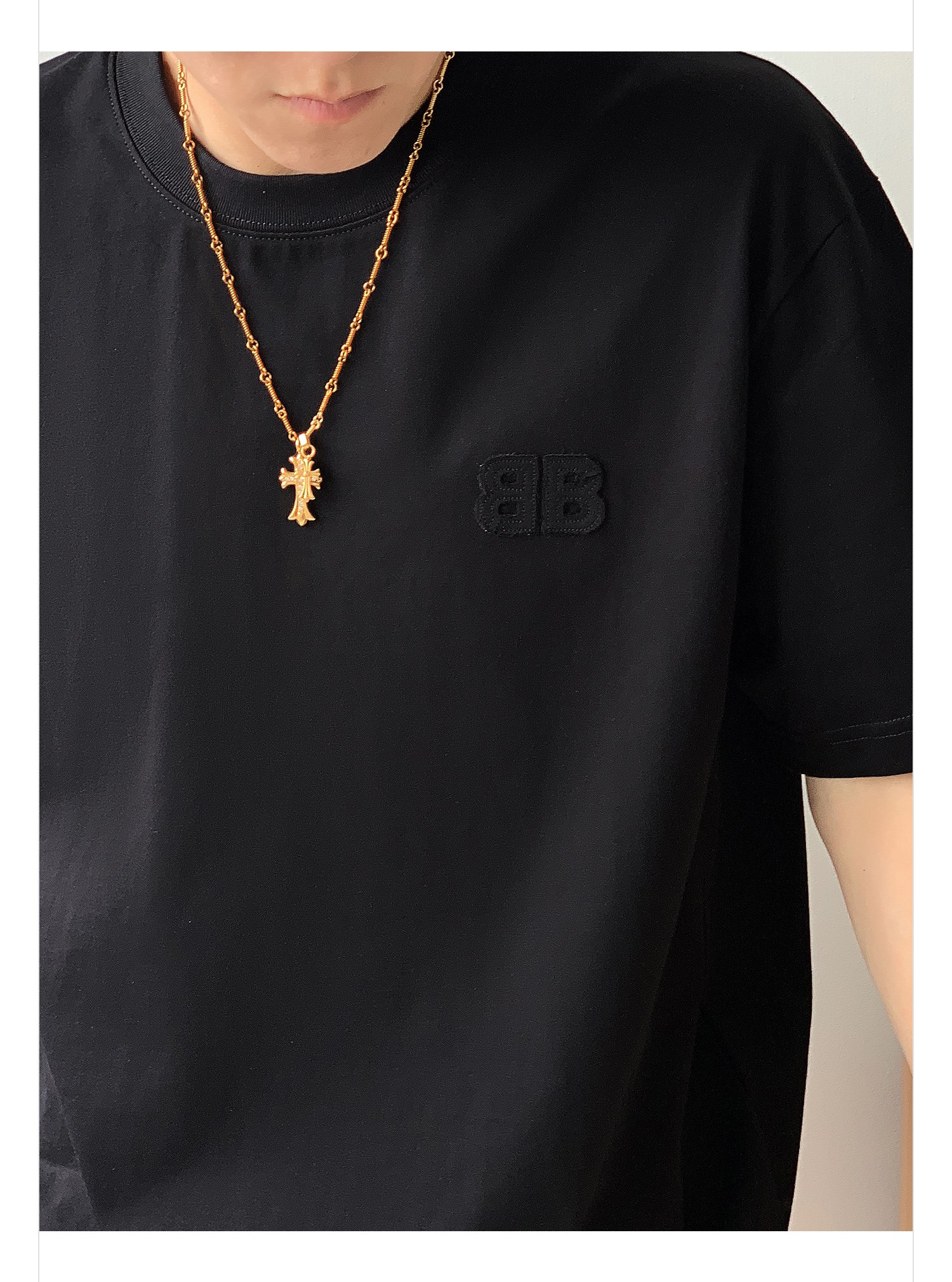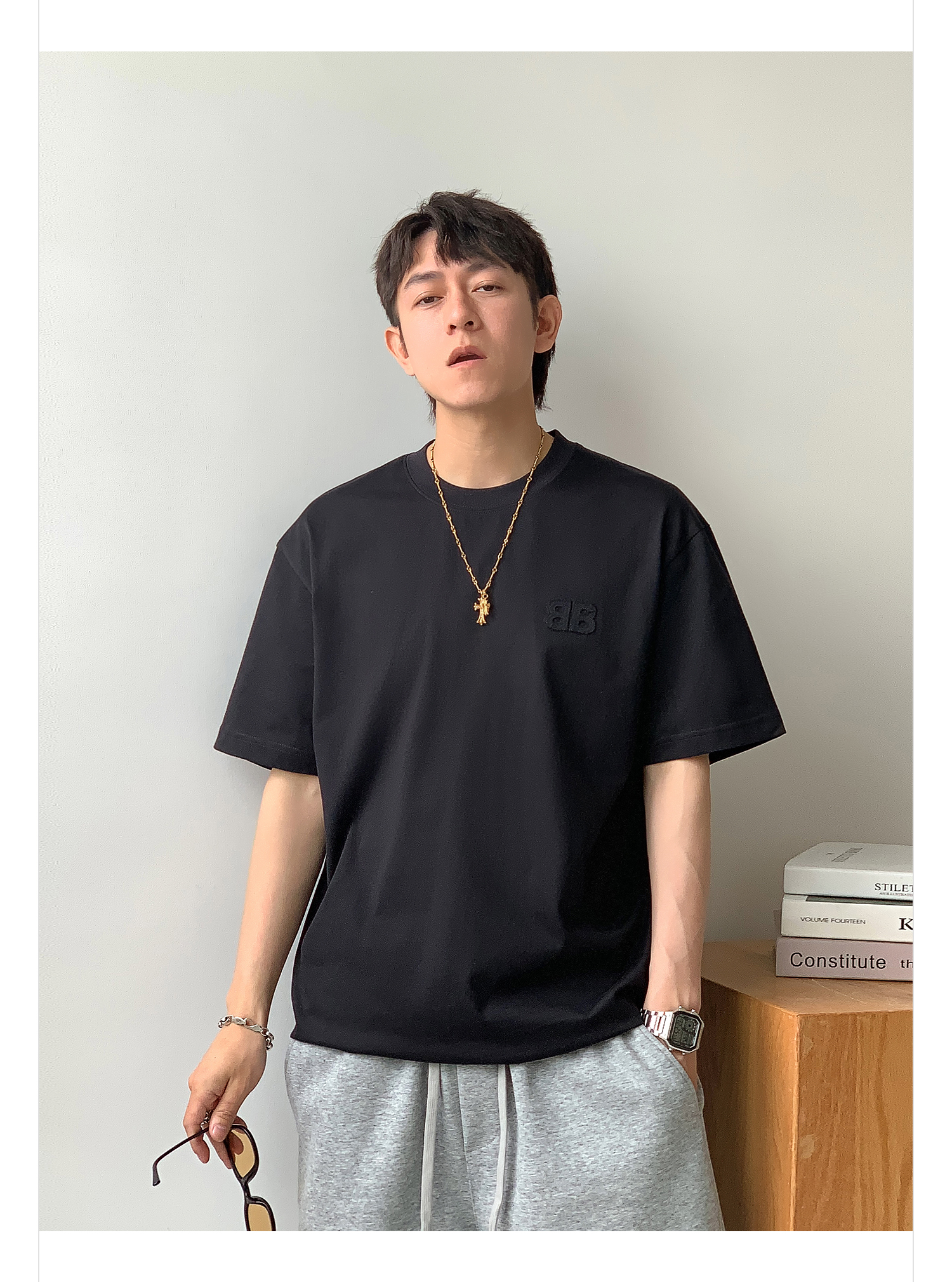 徐太浪纯色百搭字母短袖T恤男2025新款夏季宽松休闲半袖圆领上衣