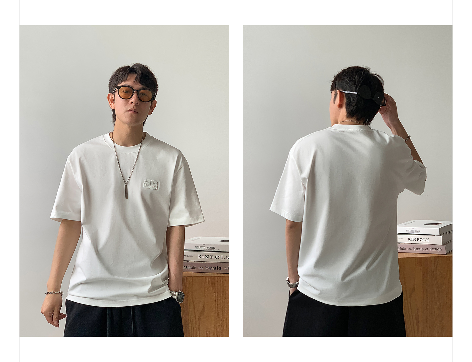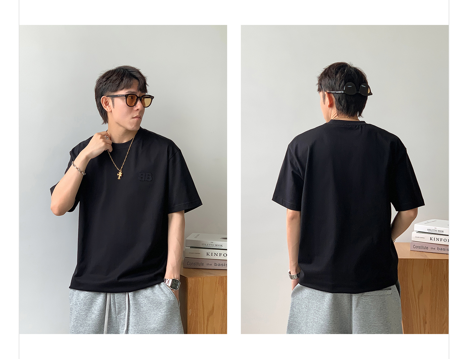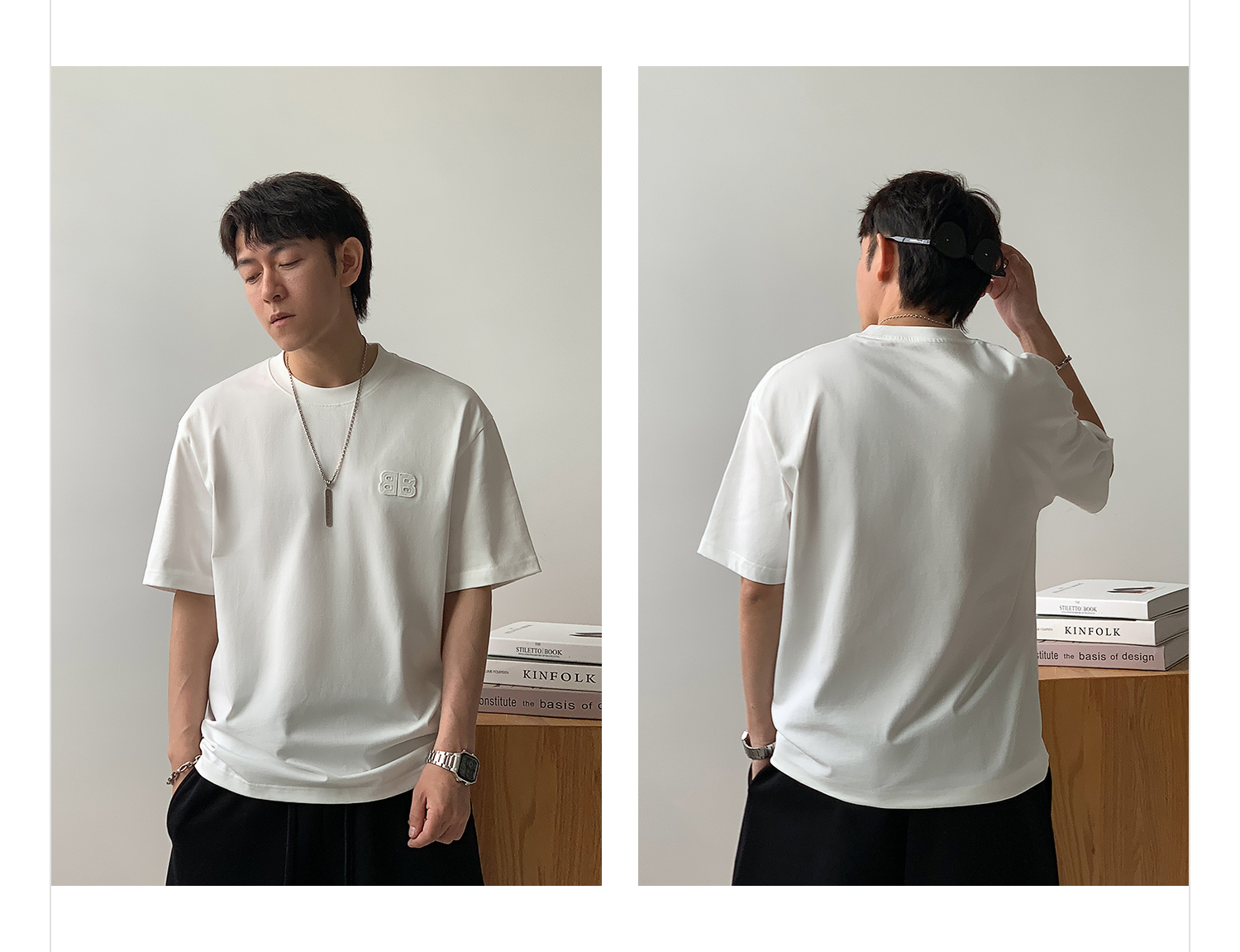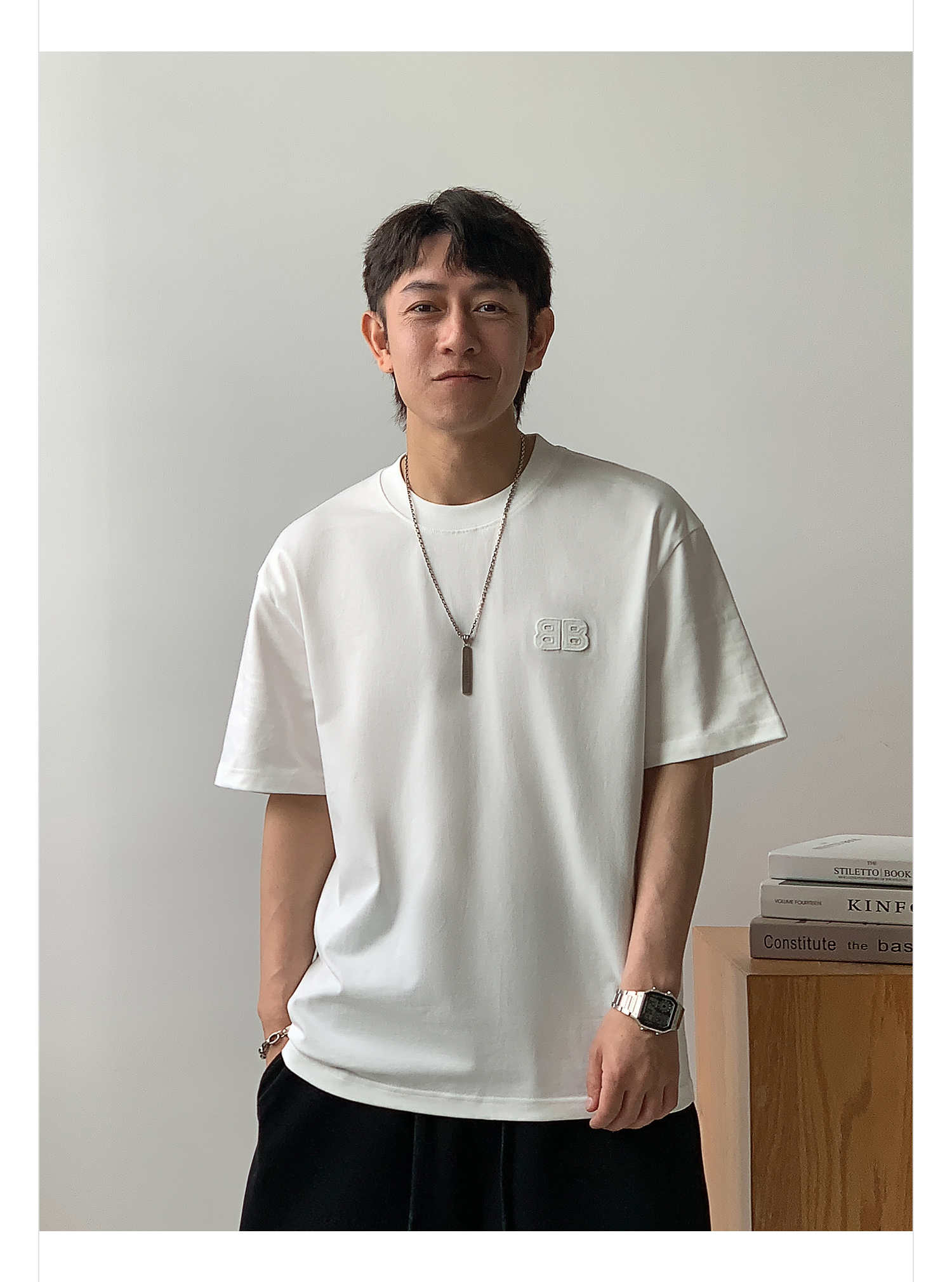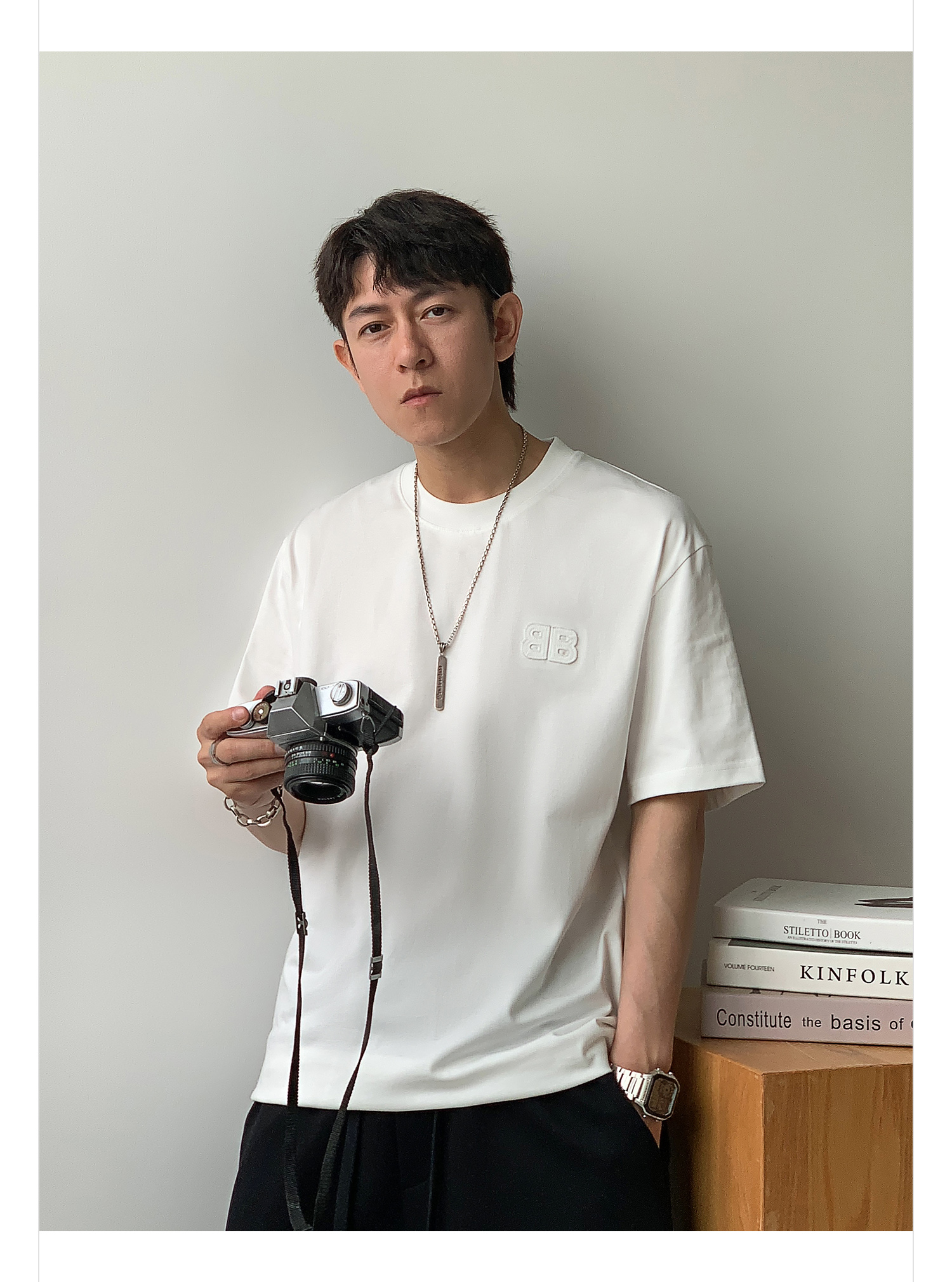 徐太浪纯色百搭字母短袖T恤男2025新款夏季宽松休闲半袖圆领上衣