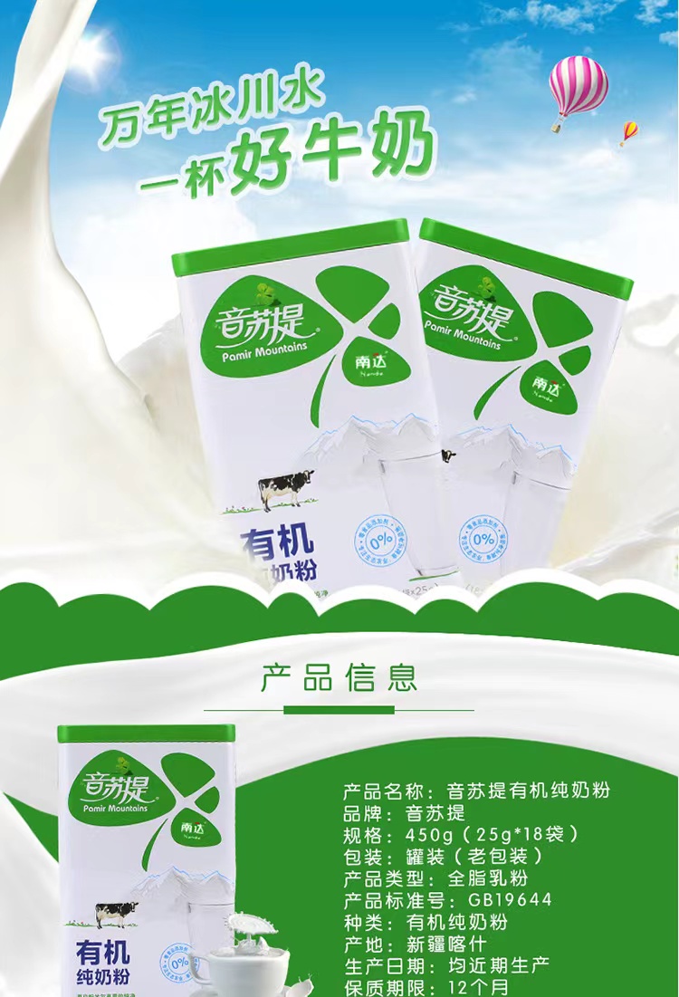 新疆喀什南达有机奶粉450g(25g*18袋)/罐