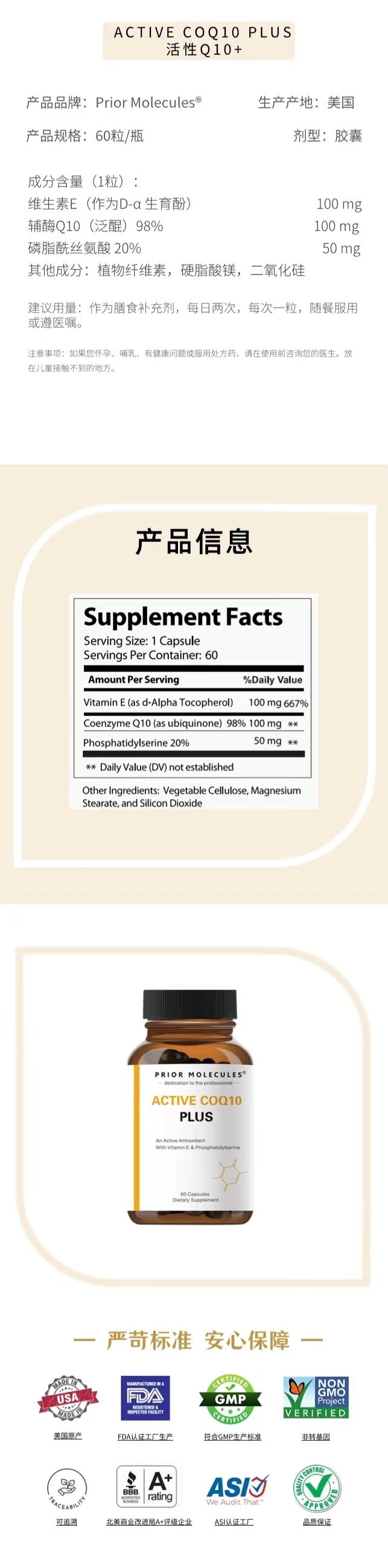 Prior Molecules 活性Q10+ ACTIVE COQ10 PLUS 60粒/瓶 09/26