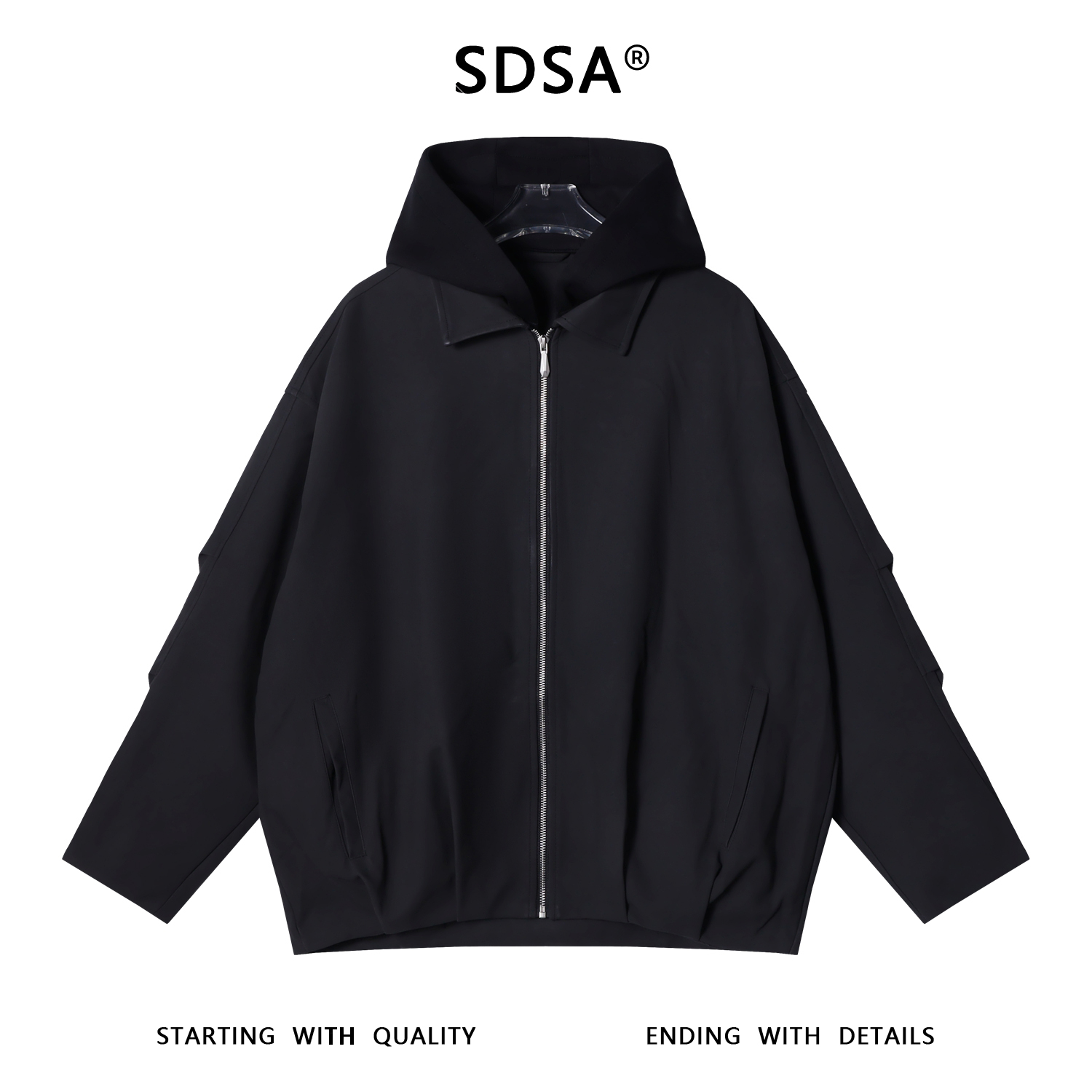 258210SDSA秋冬新款痞帅男装扎染褶皱拼接翻领连帽假两件夹克外套百搭