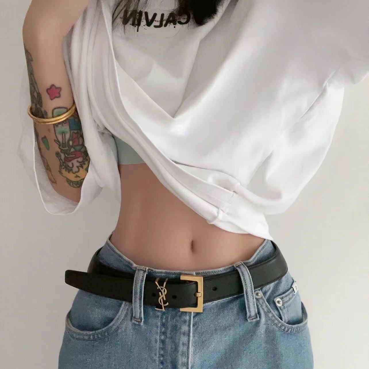 意大利进口平纹小牛皮,YSL原版开模复古金扣,尺寸2.0cm时尚百搭高雅