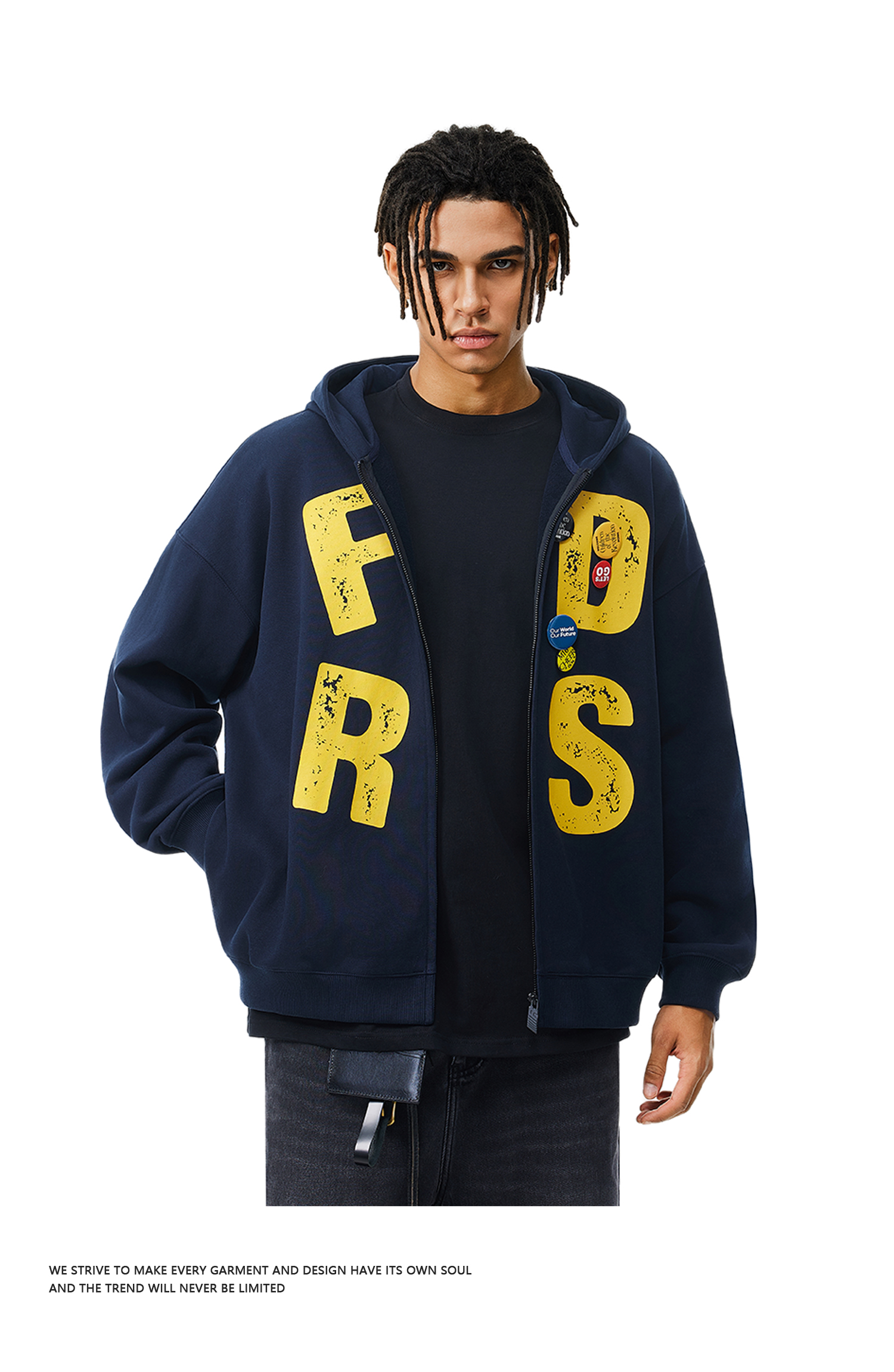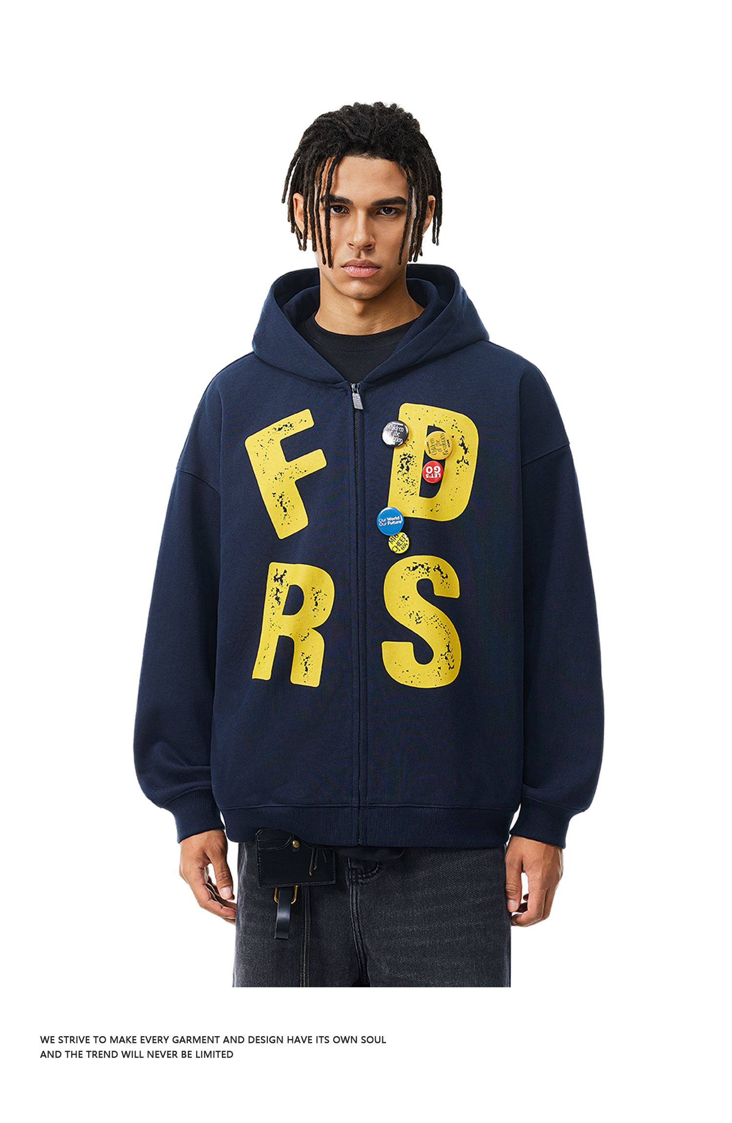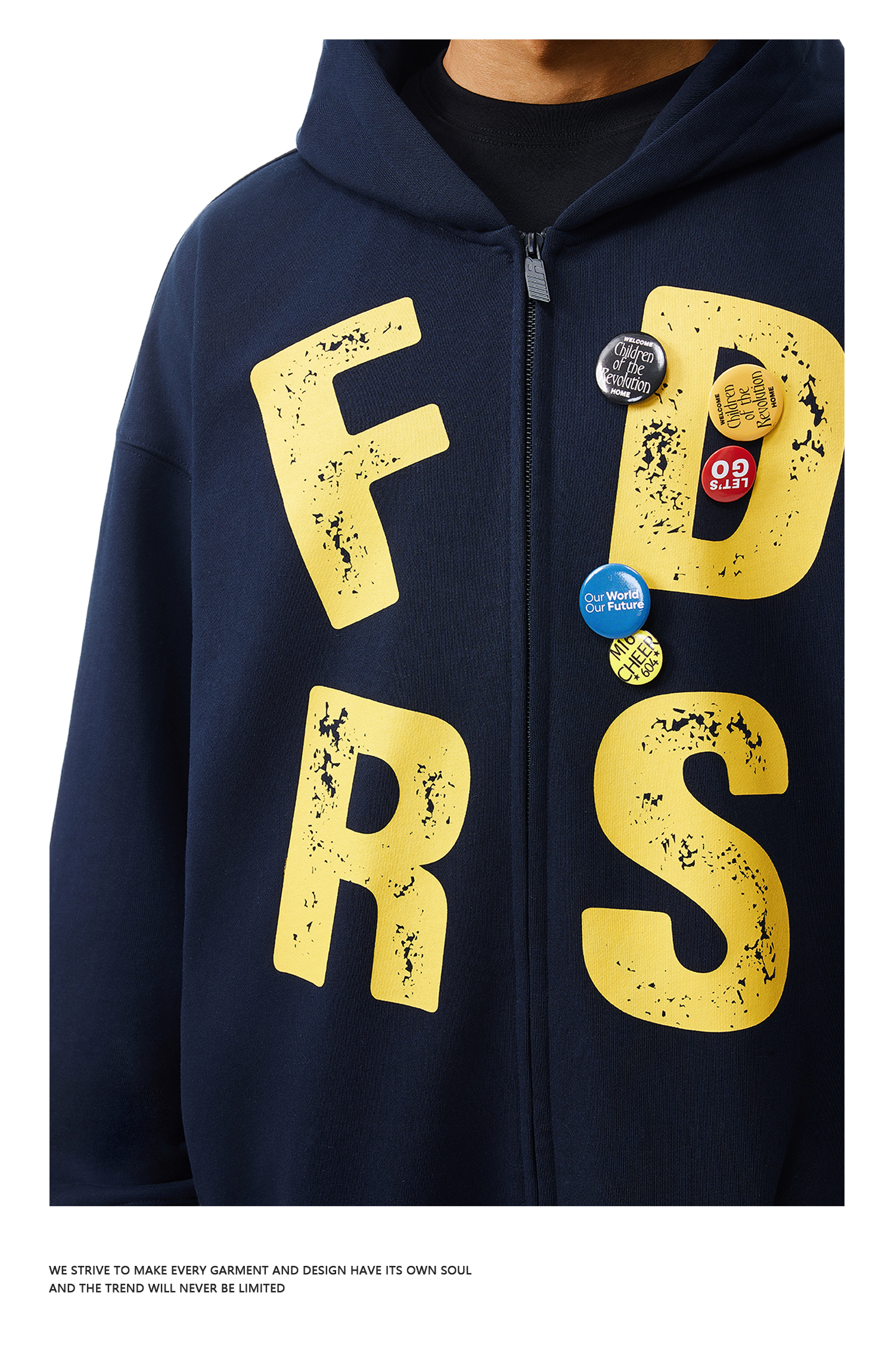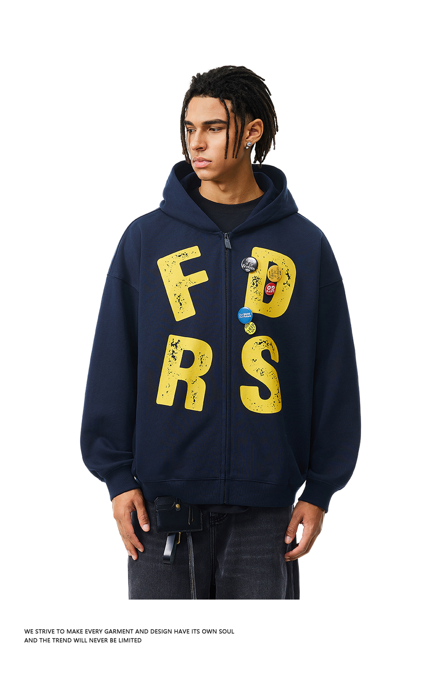 FDR官方店 大字母美式印花徽章连帽卫衣男女春秋季复古运动情侣装