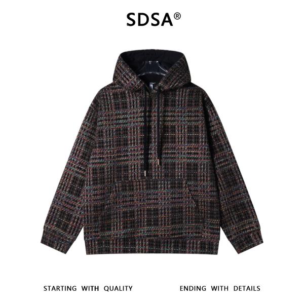 WY1340SDSA男士秋冬新款痞帅男装美式复古彩色格子抽绳连帽卫衣宽松潮流