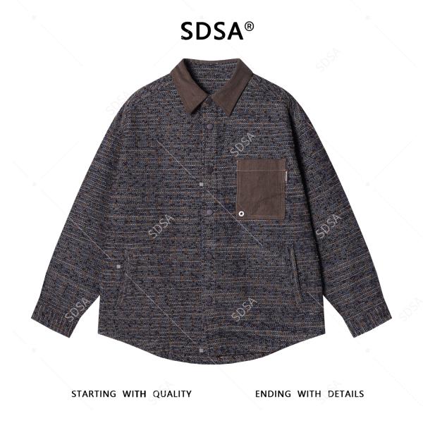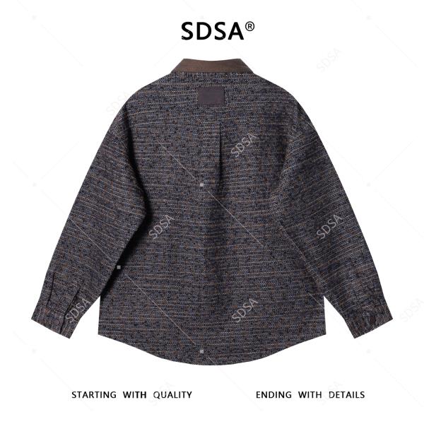 12480SDSA男士秋冬新款痞帅男装潮牌撞色提花口袋翻领长袖衬衫宽松百搭