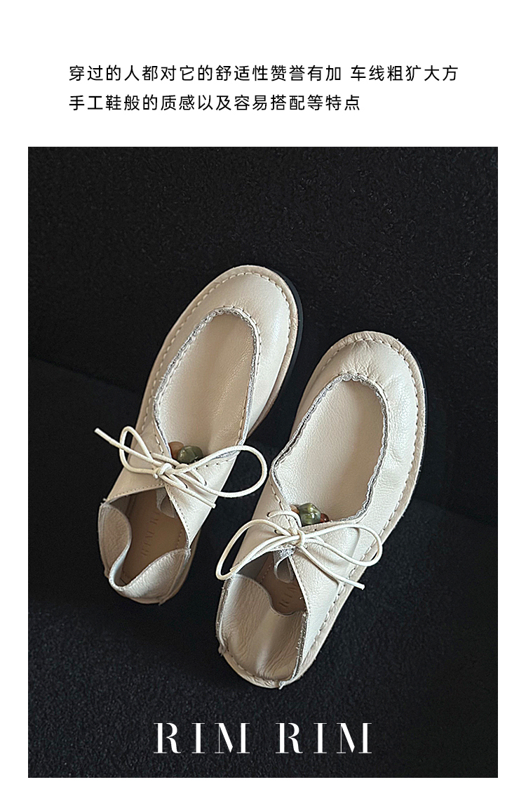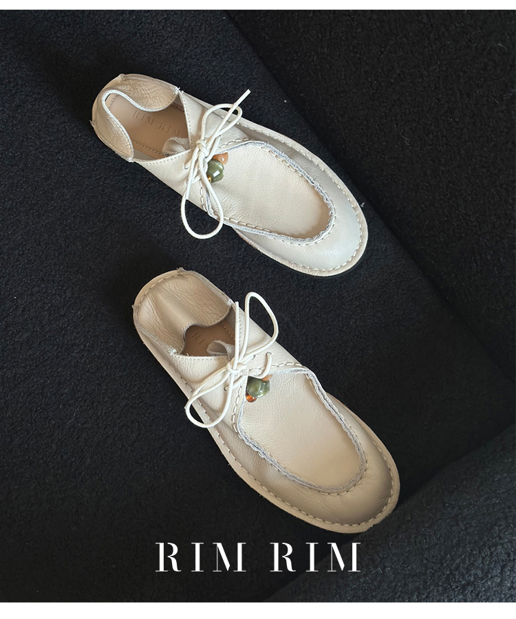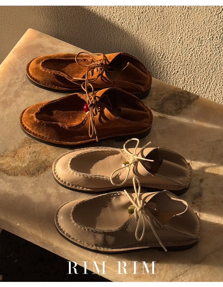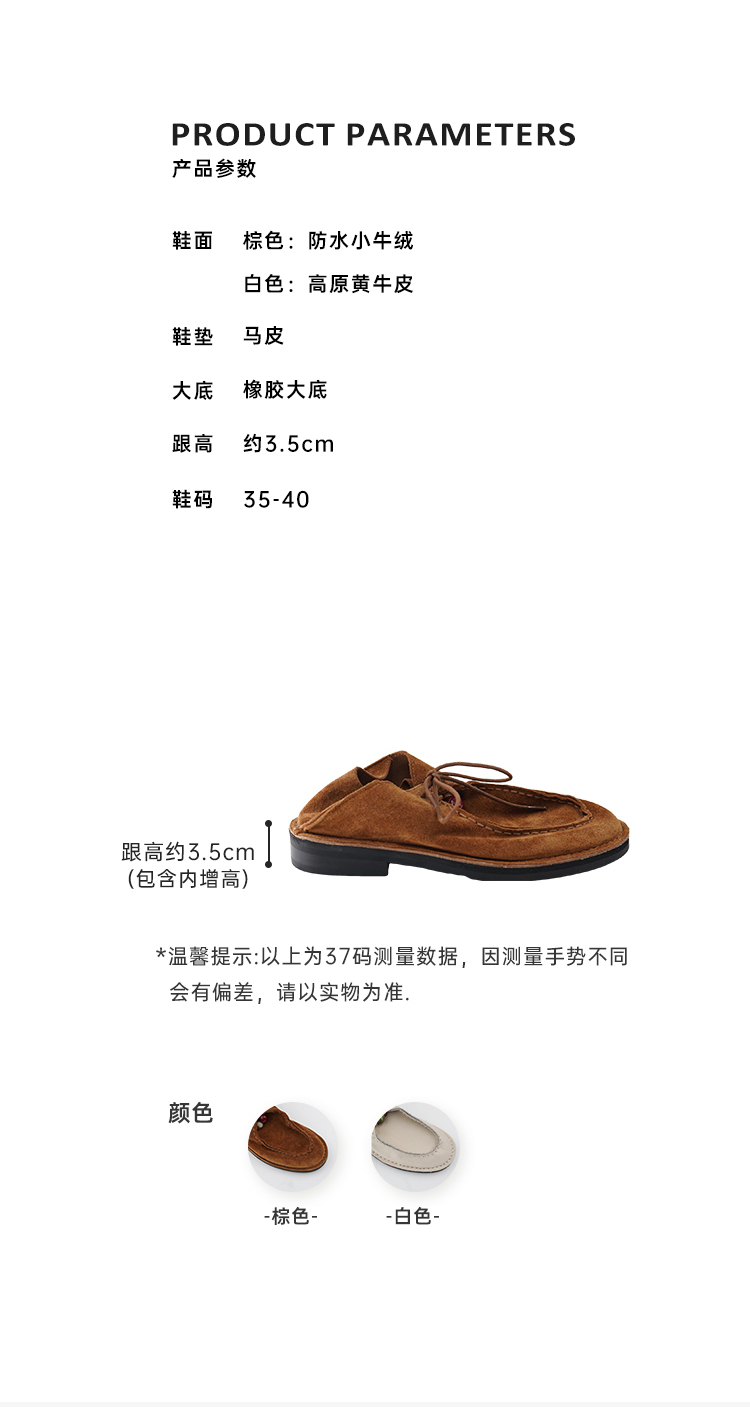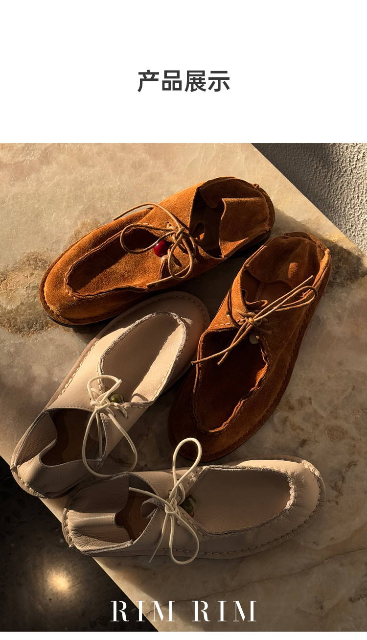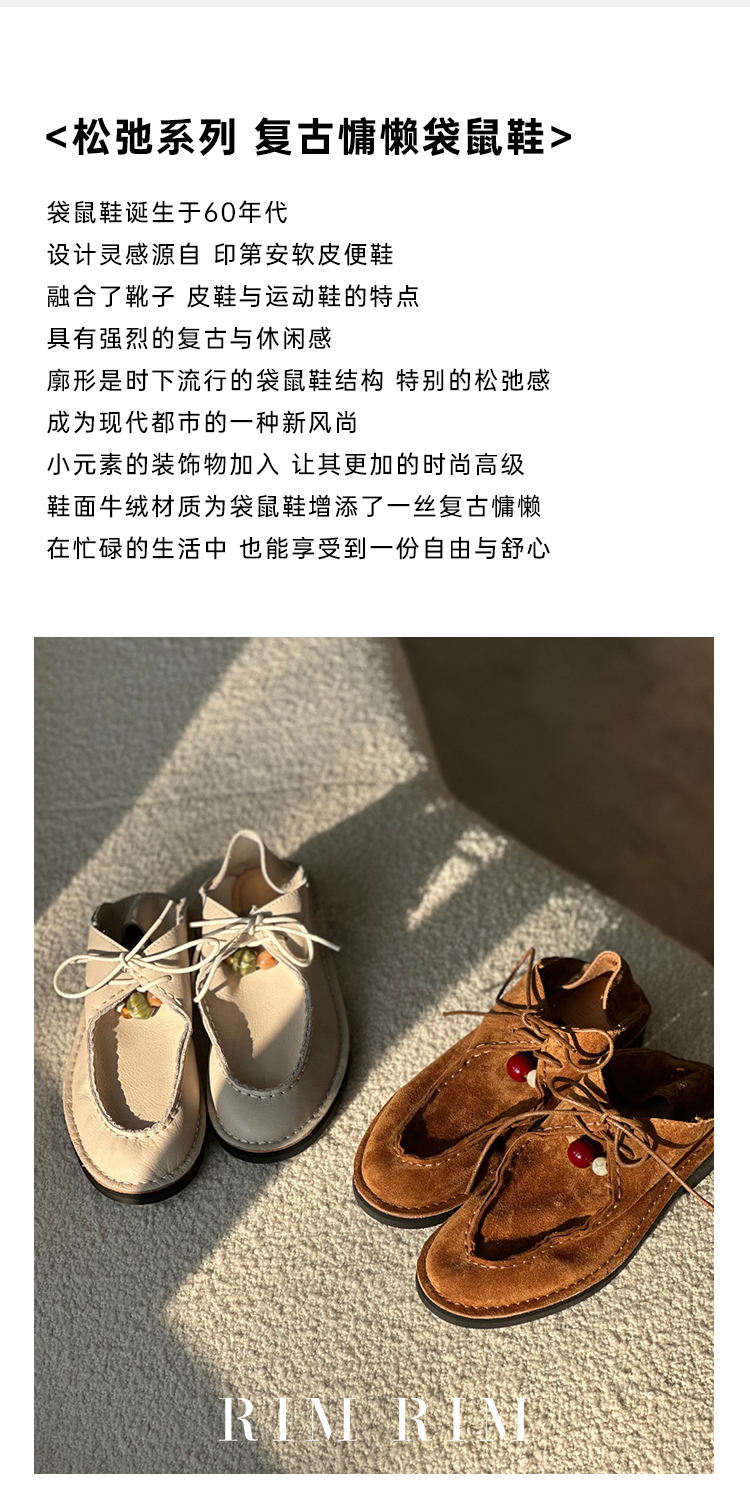 RIM RIM复古马皮绒乐福鞋新款真皮圆头系带平底可踩跟休闲单鞋女时尚款 袋鼠鞋女平底板鞋2392-2