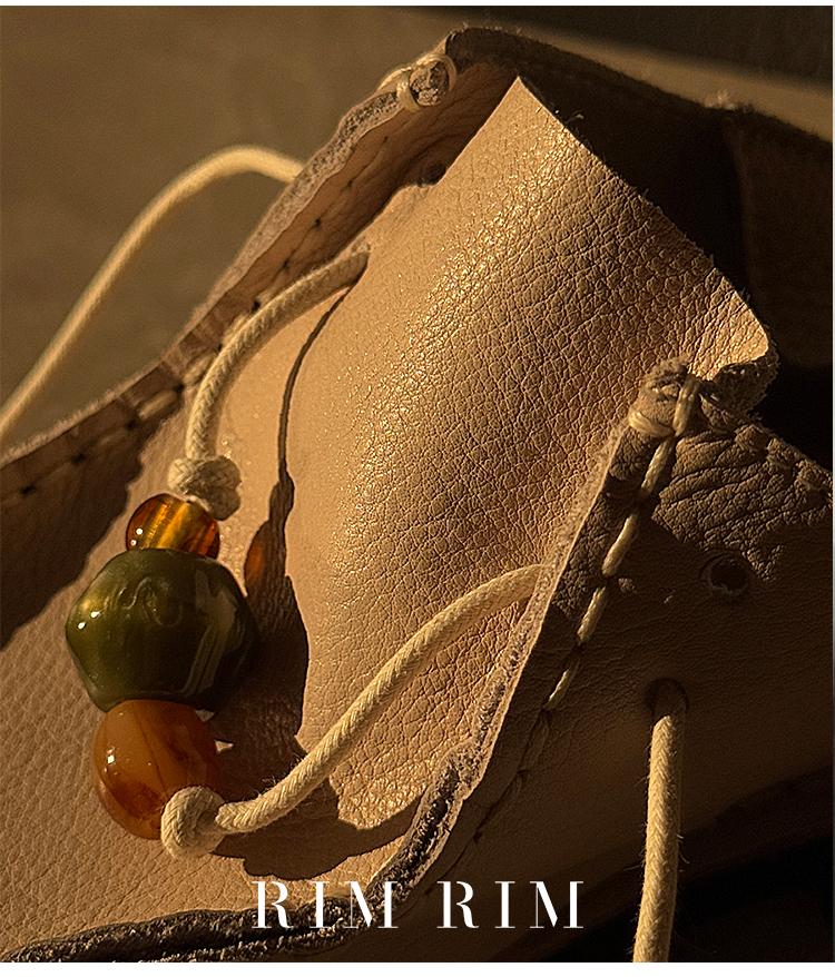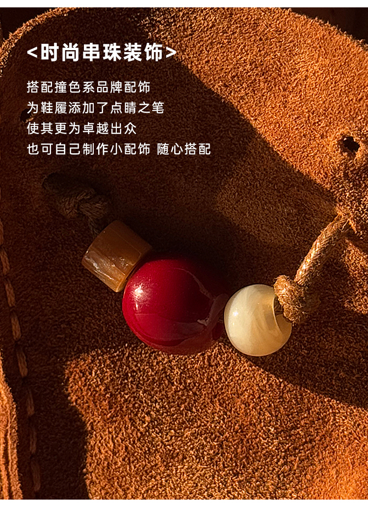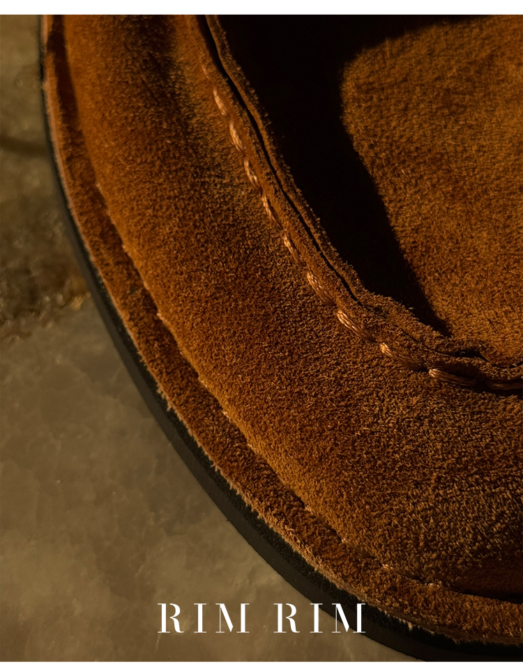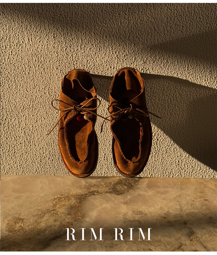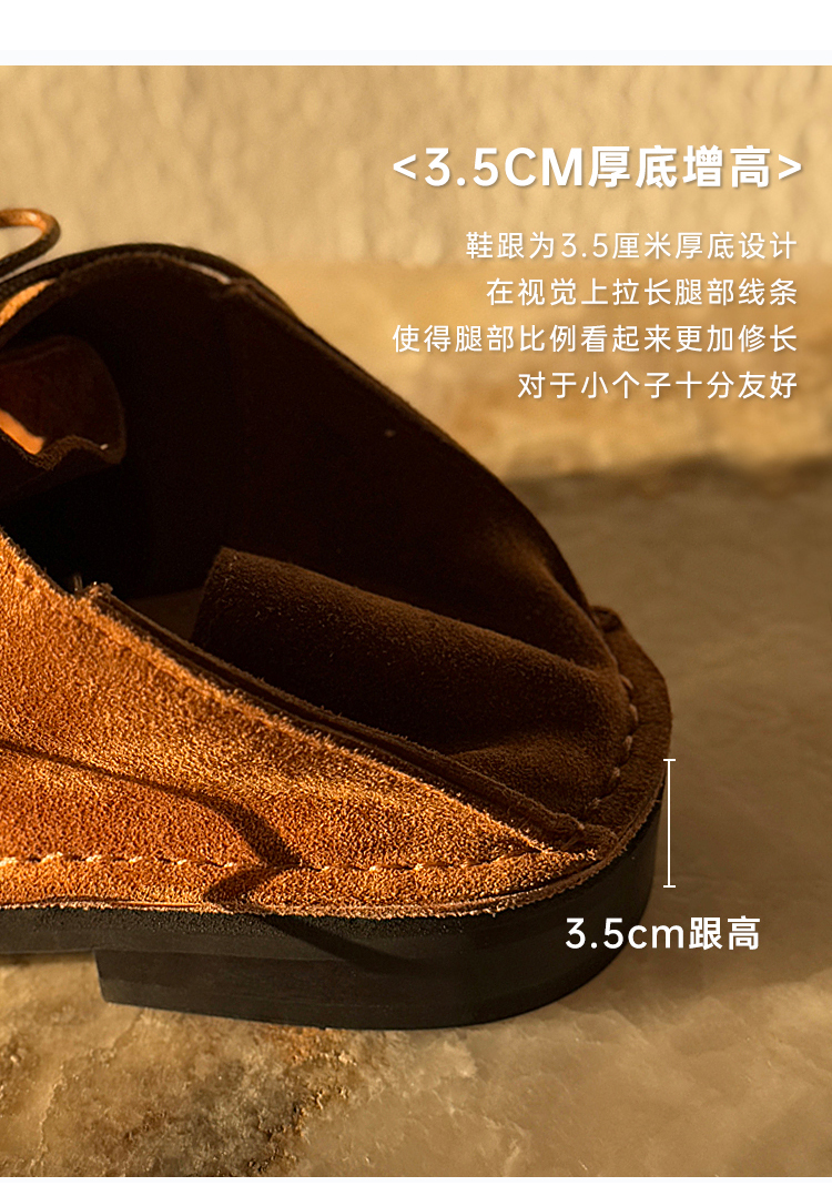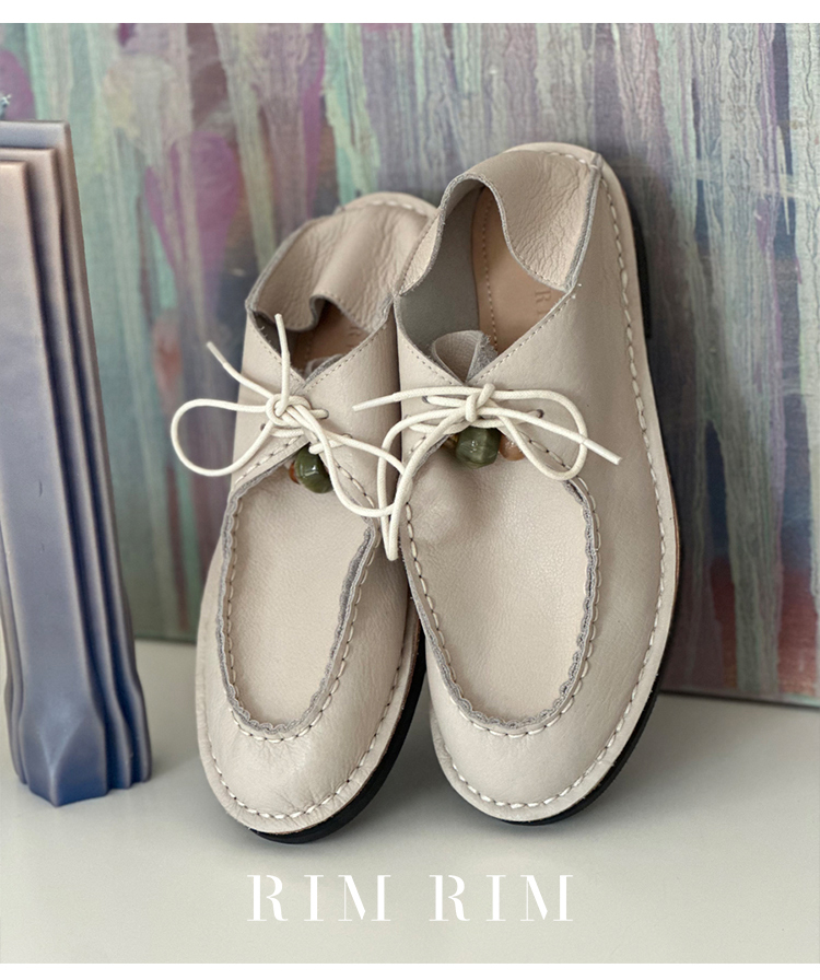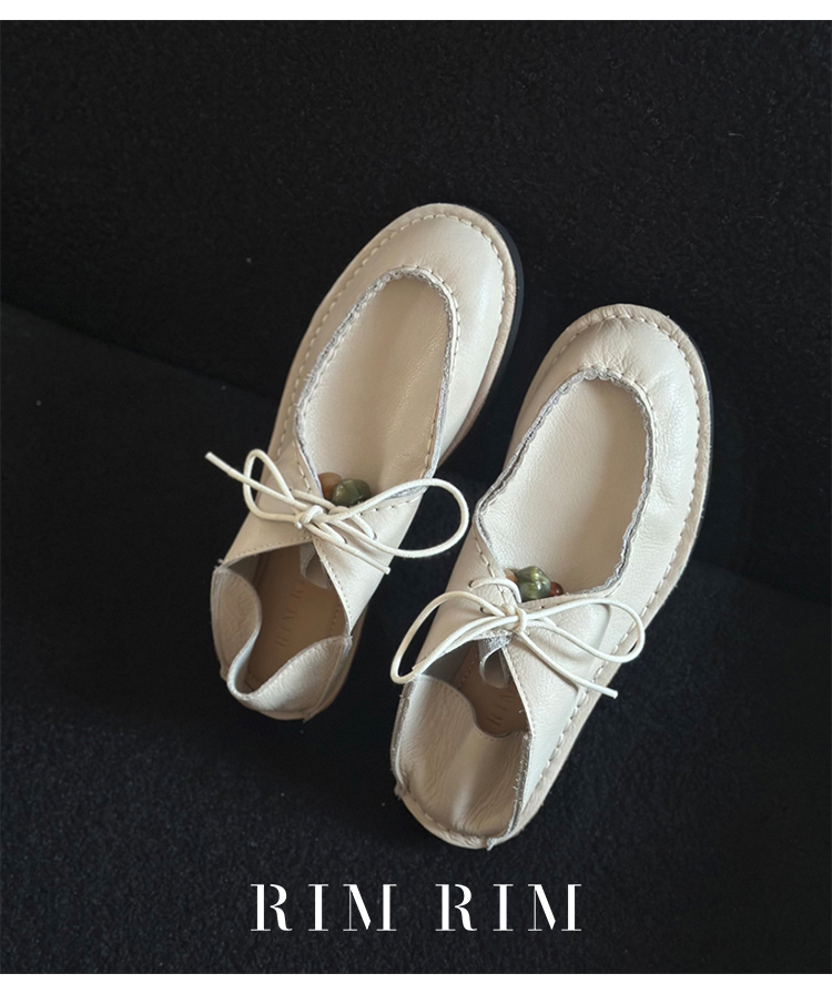 RIM RIM复古马皮绒乐福鞋新款真皮圆头系带平底可踩跟休闲单鞋女时尚款 袋鼠鞋女平底板鞋2392-2