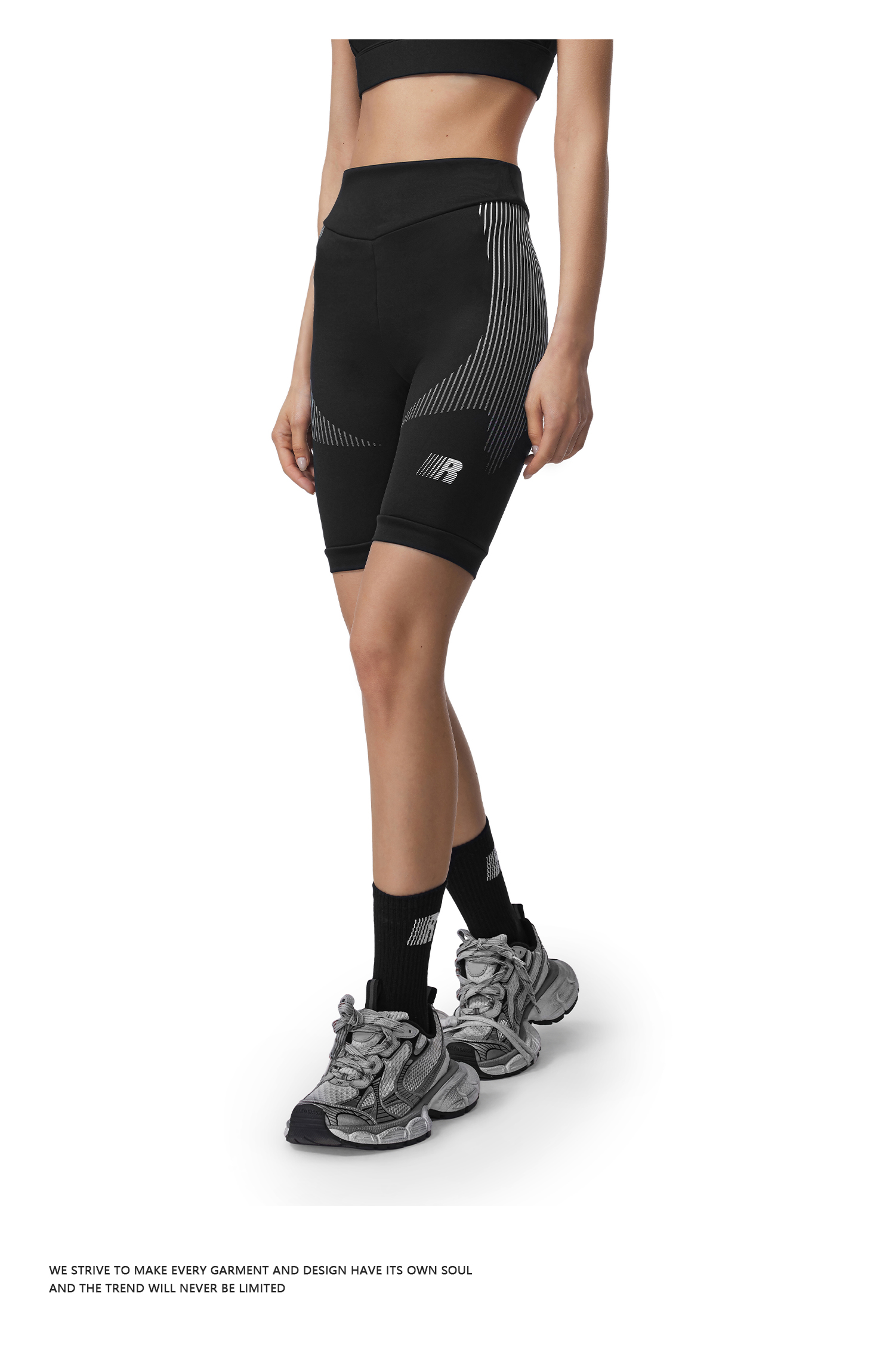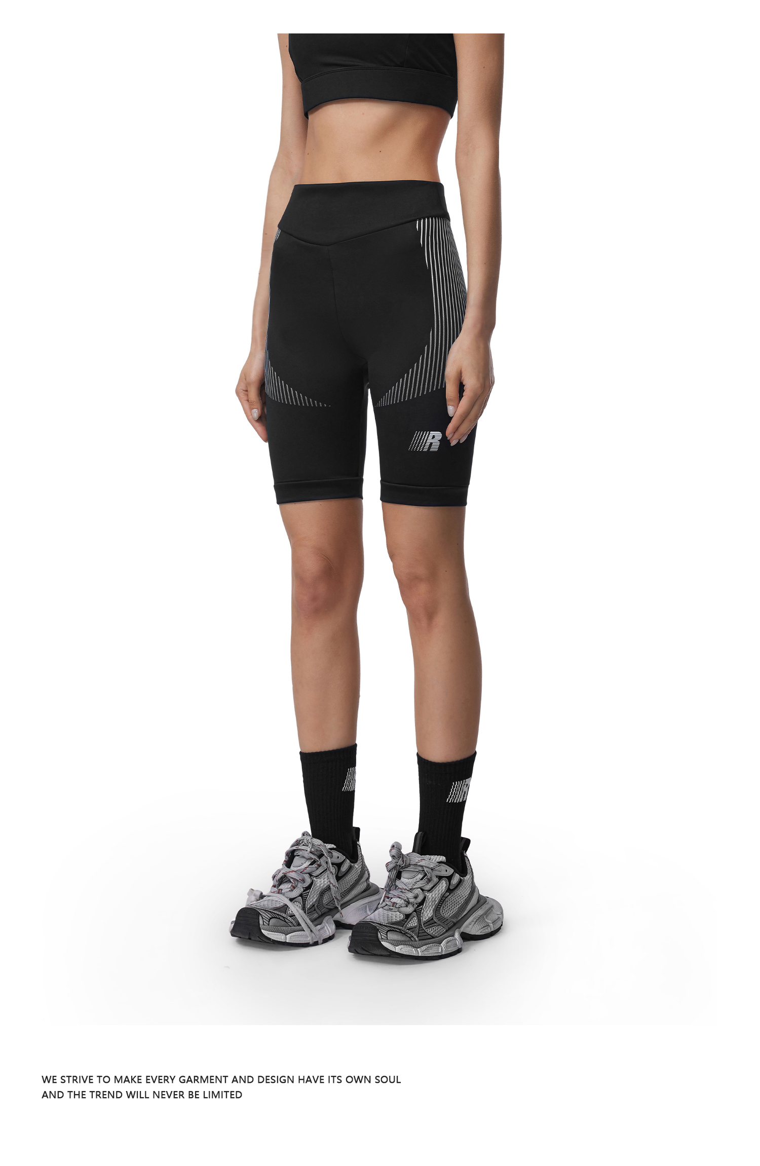 FDR官方店 先锋R字条纹瑜伽骑行裤女夏季跑步健身高腰五分打底裤