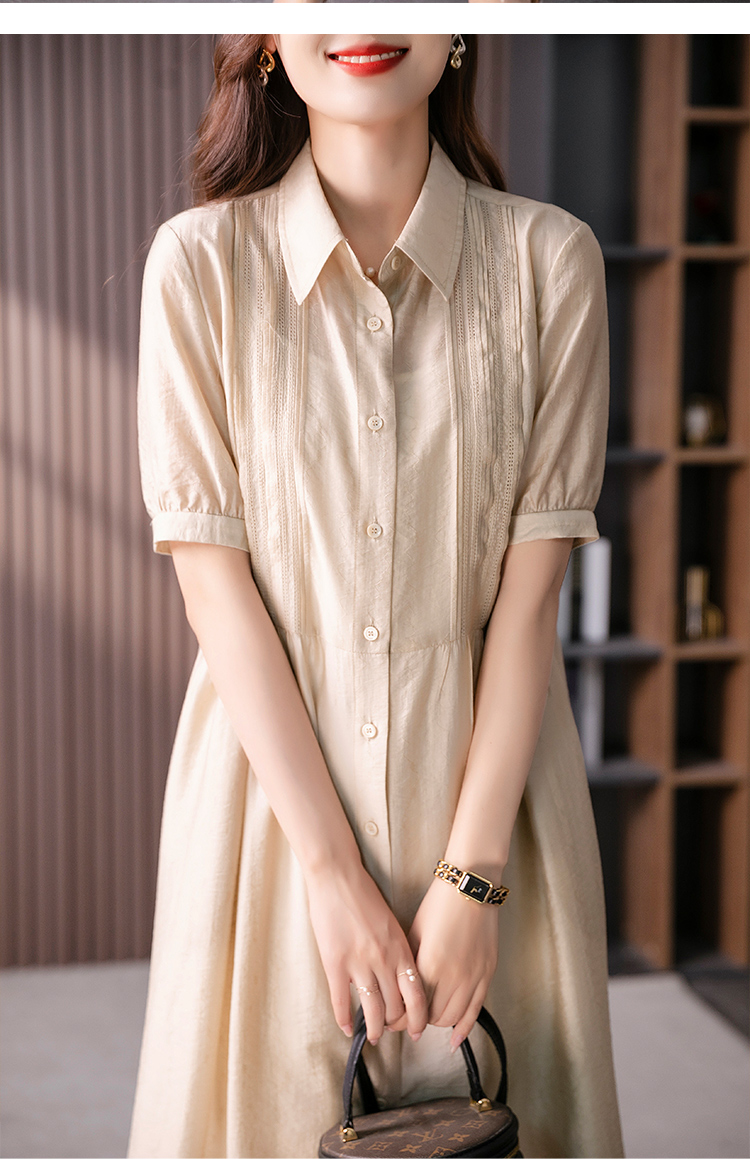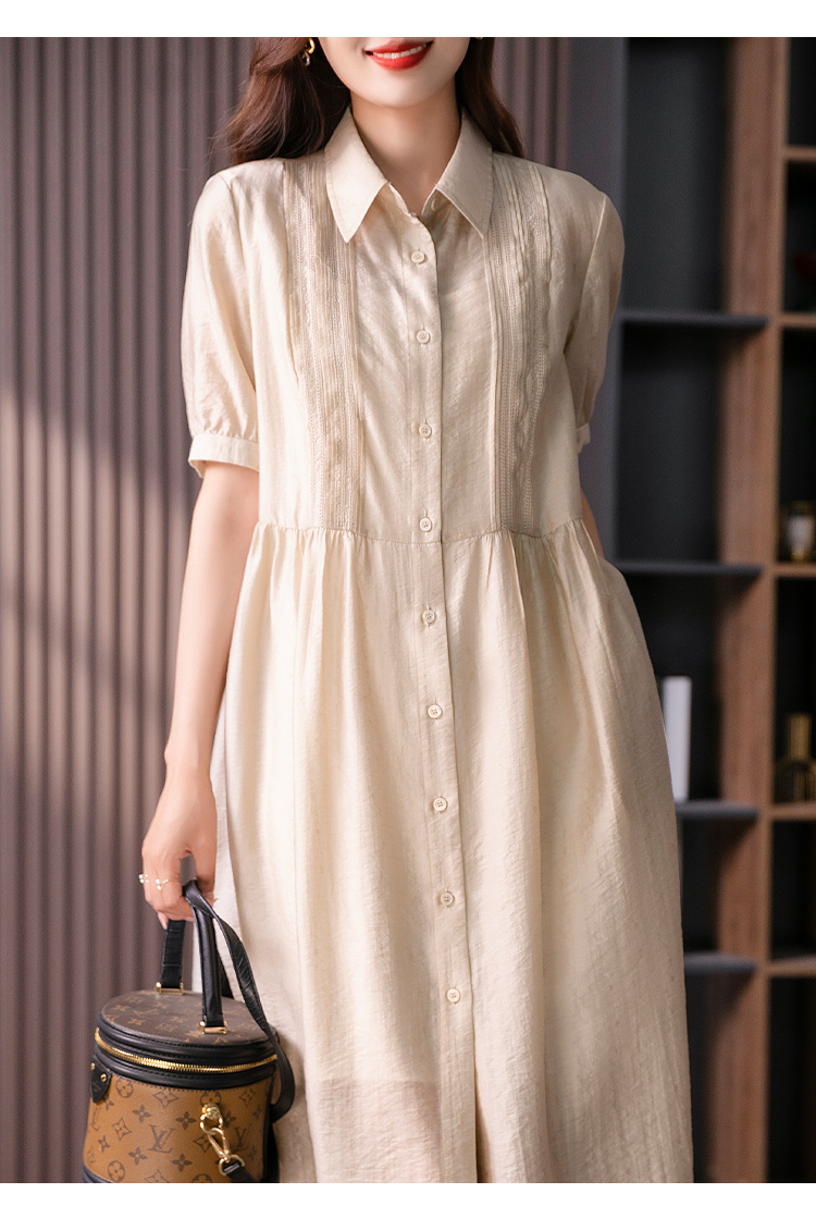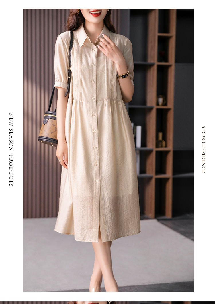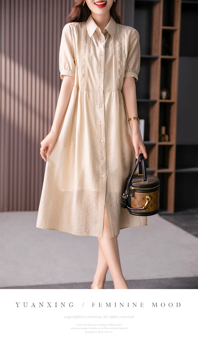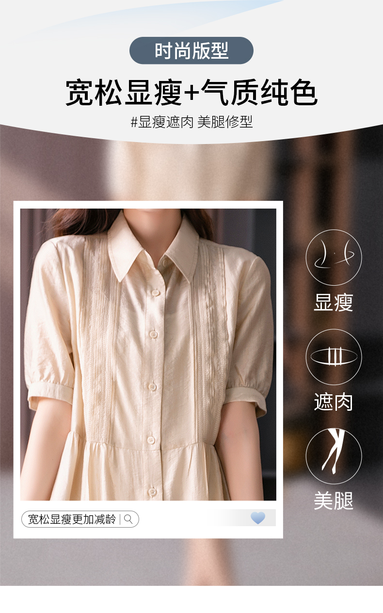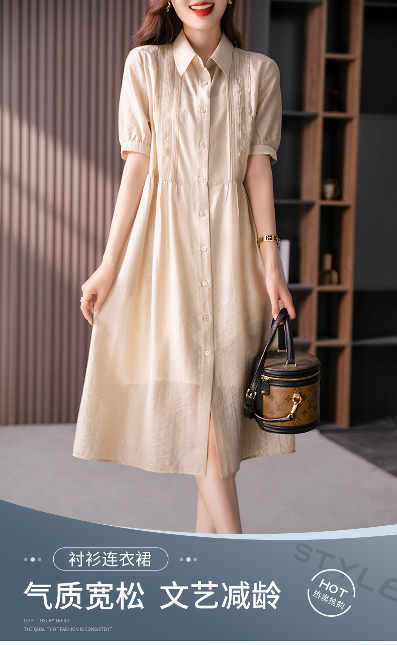 89199原形文艺减龄气质连衣裙女2024春夏季新款韩版宽松显瘦衬衫长裙子