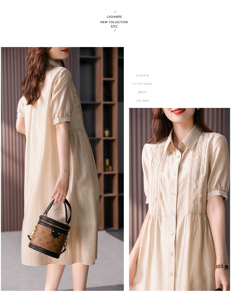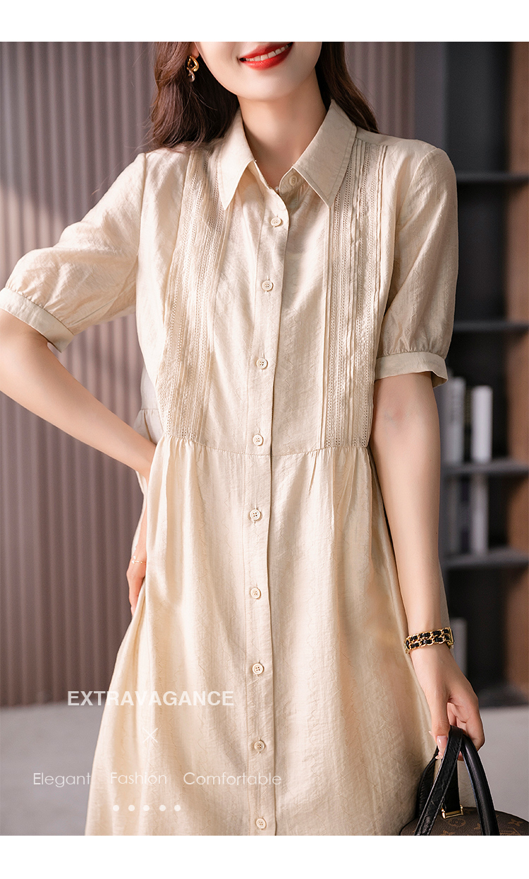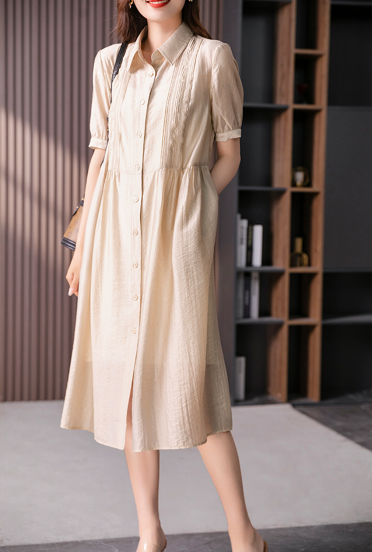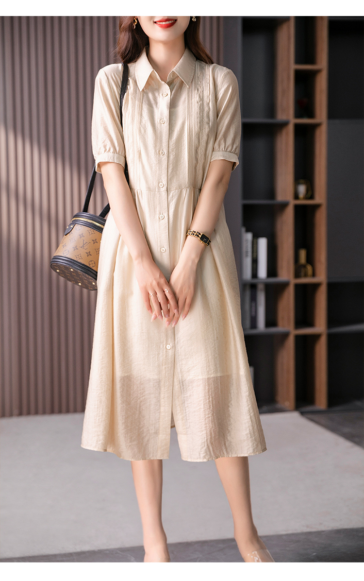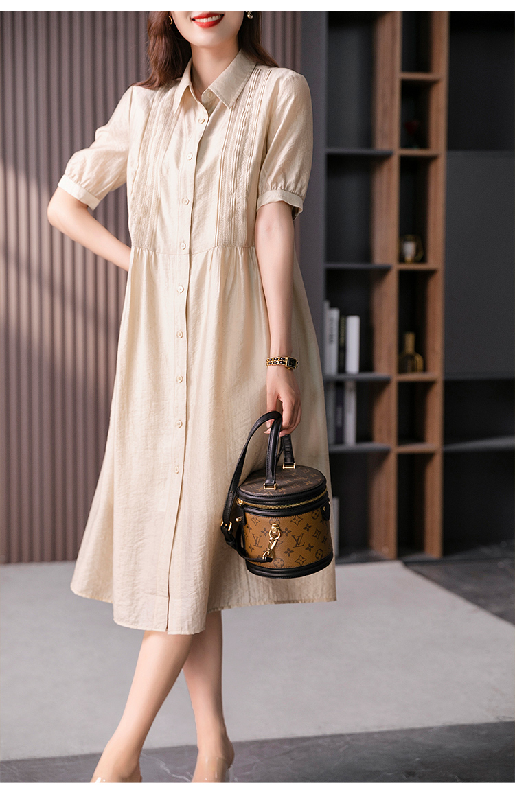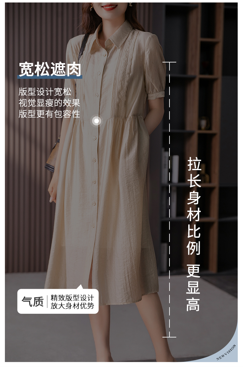 89199原形文艺减龄气质连衣裙女2024春夏季新款韩版宽松显瘦衬衫长裙子