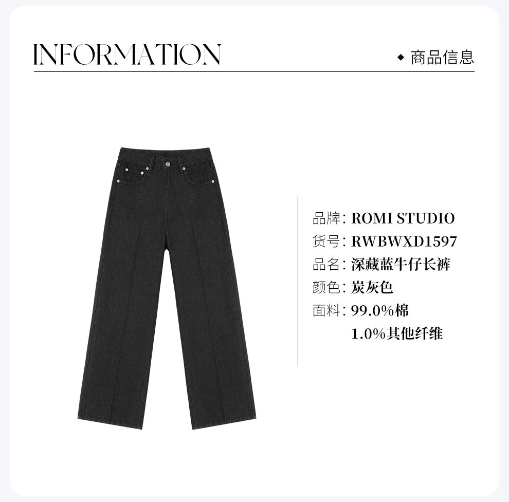 ROMI STUDIO“极简优雅”高支棉环保水洗立裁直筒牛仔裤 RWBWXD1597