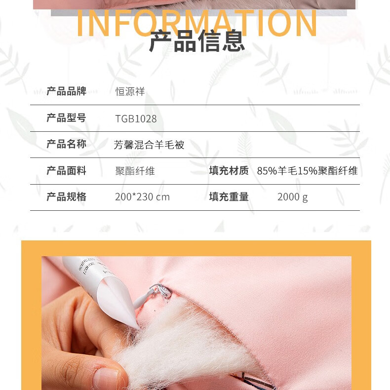 恒源祥礼业TGB1028芳馨混合羊毛被双人秋冬被芯 芳馨混合羊毛被 200*230cm