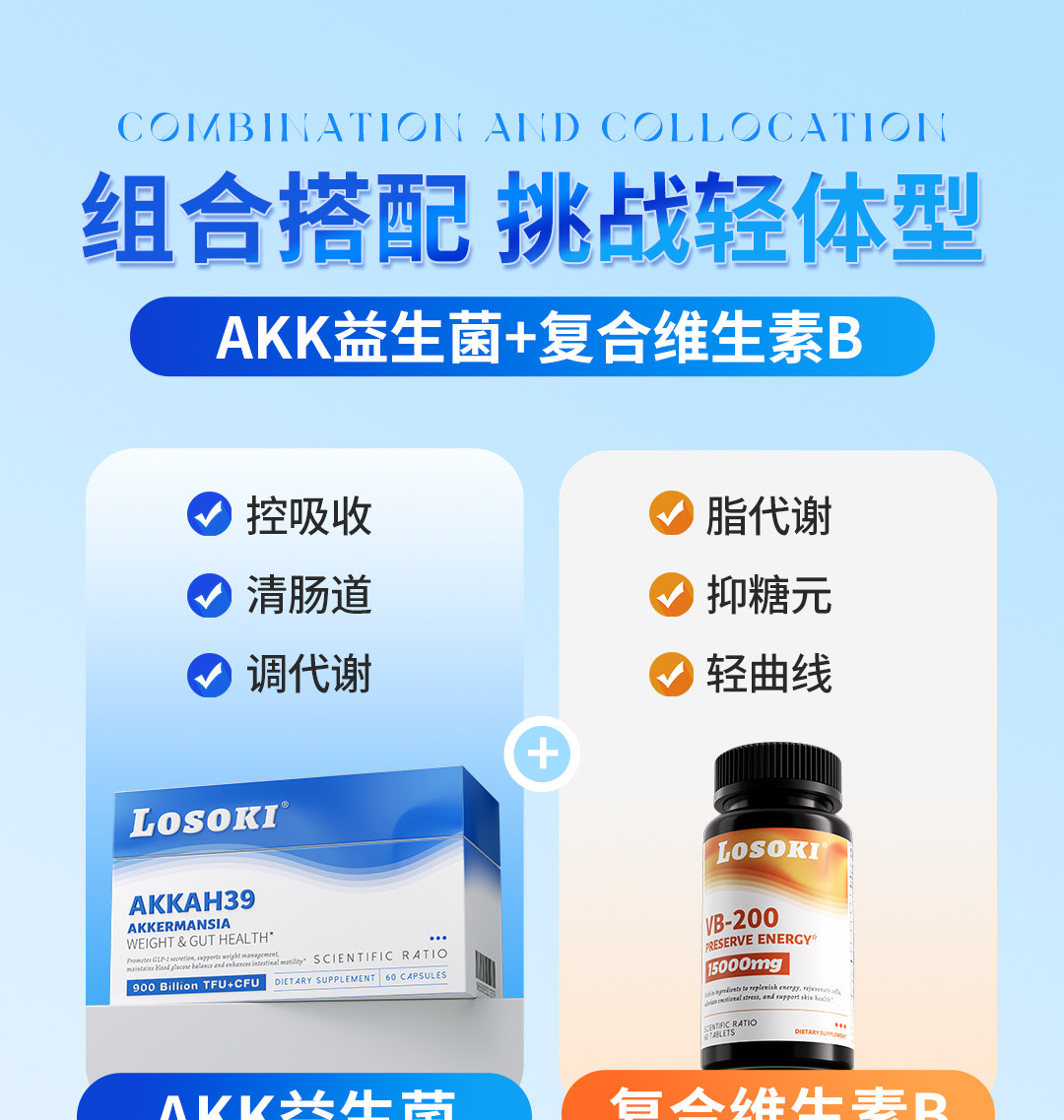 losokiAKK益生菌体重管理燃热量食欲减少瘦子菌提糖代谢美国进口