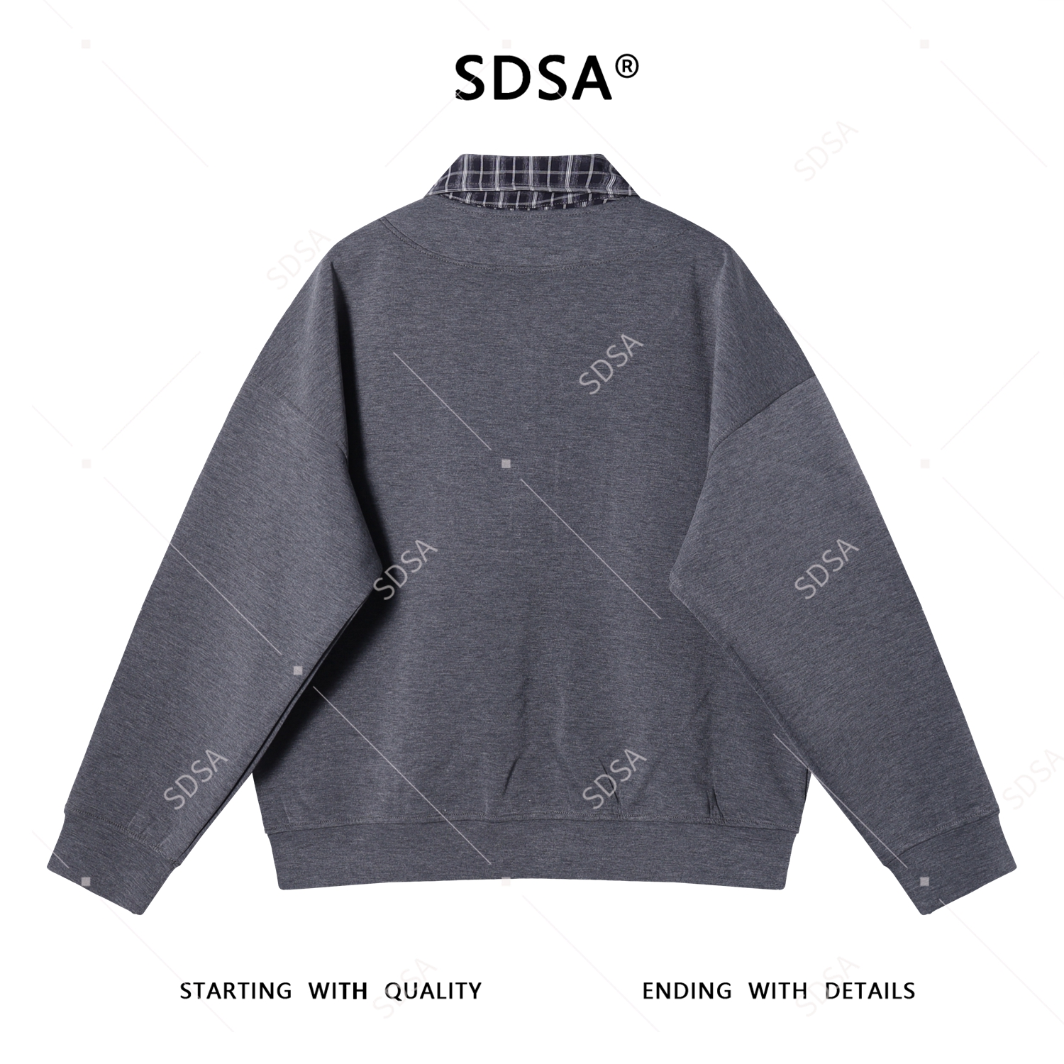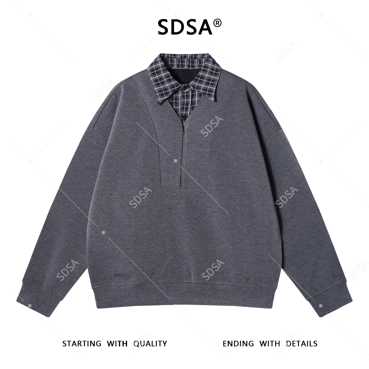 SDSA男士秋冬新款痞帅男装潮牌半拉链拼接翻领卫衣百搭宽松上衣