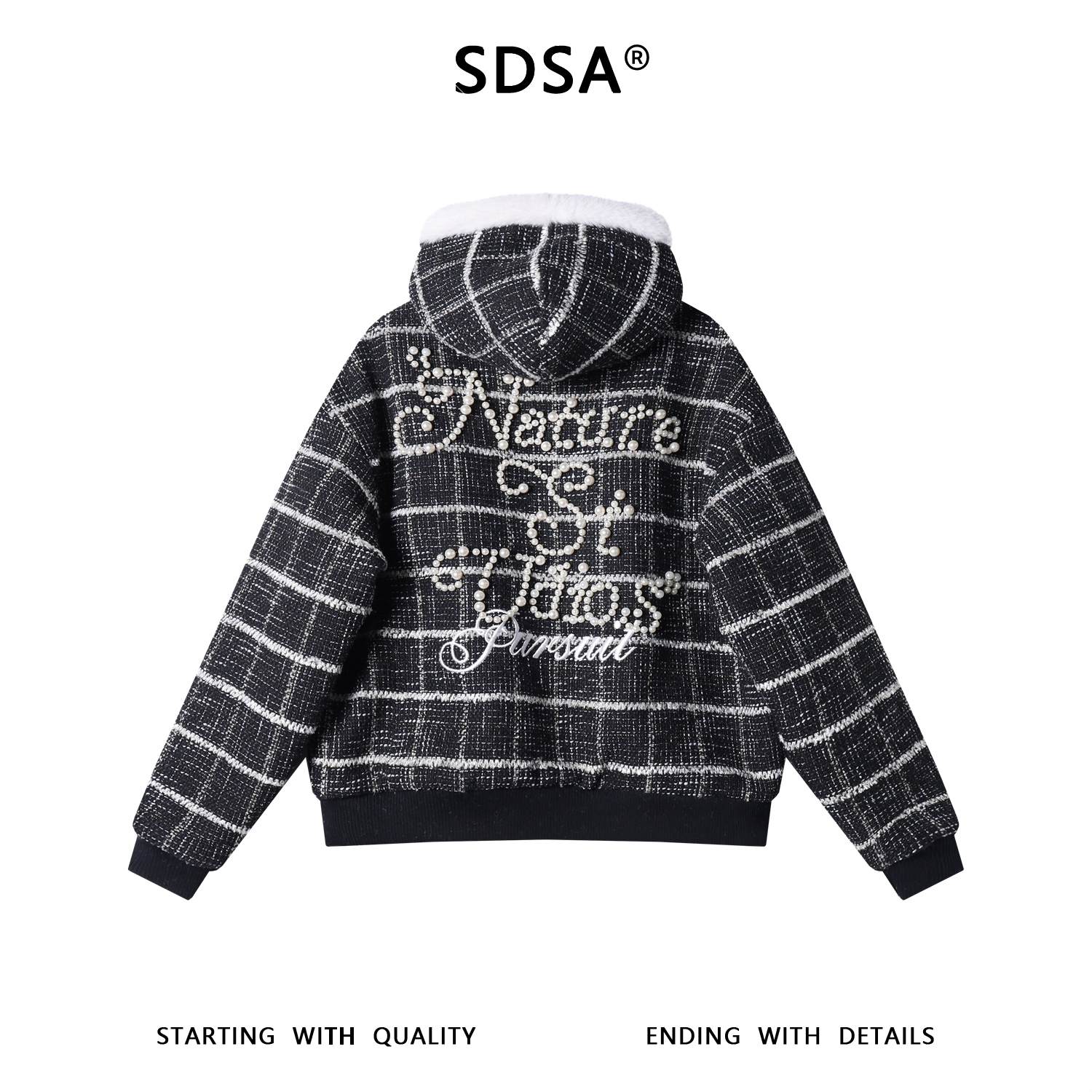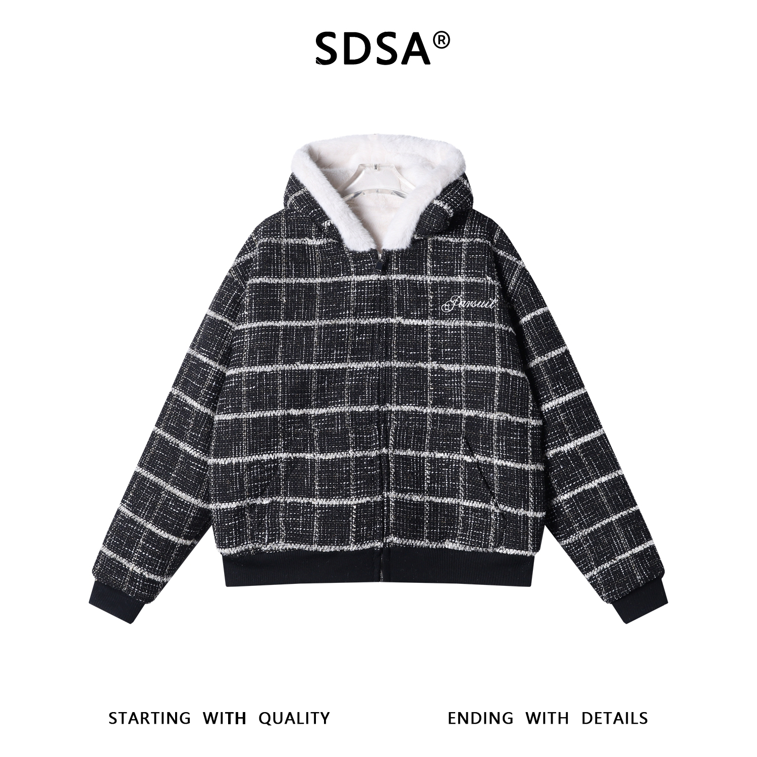 25178SDSA秋冬新款痞帅男装简约撞色格纹刺绣字母拉链连帽棉服重工百搭
