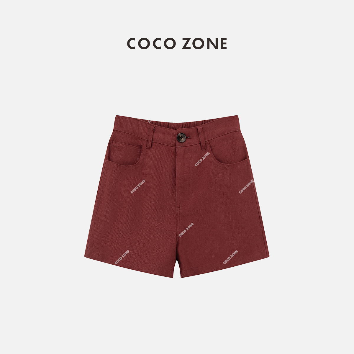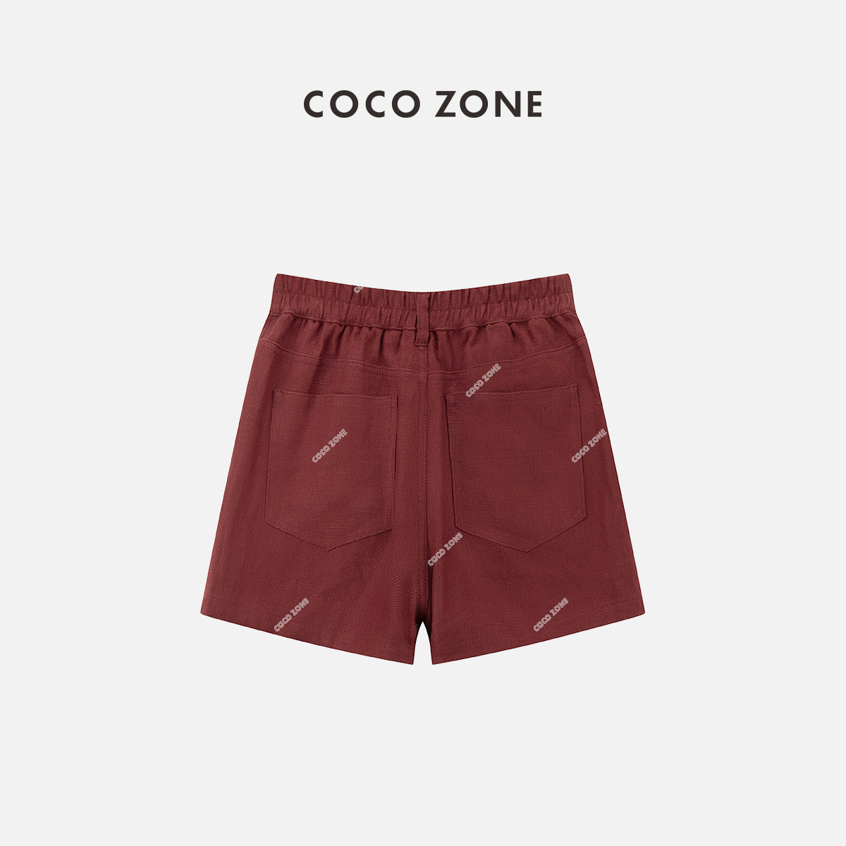 COCO ZONE"波尔多”夏季纯色后松紧腰短裤时尚设计感裤子CC2B0619