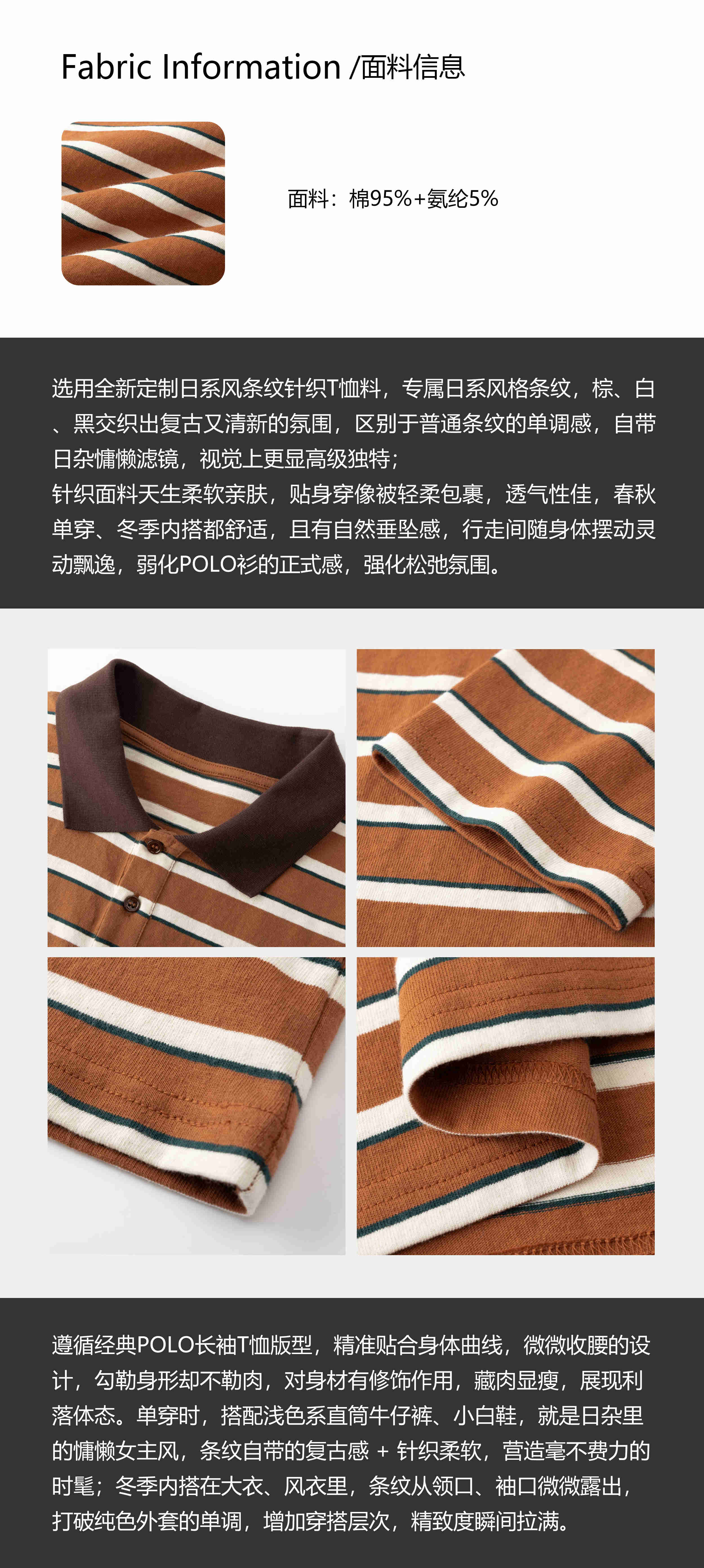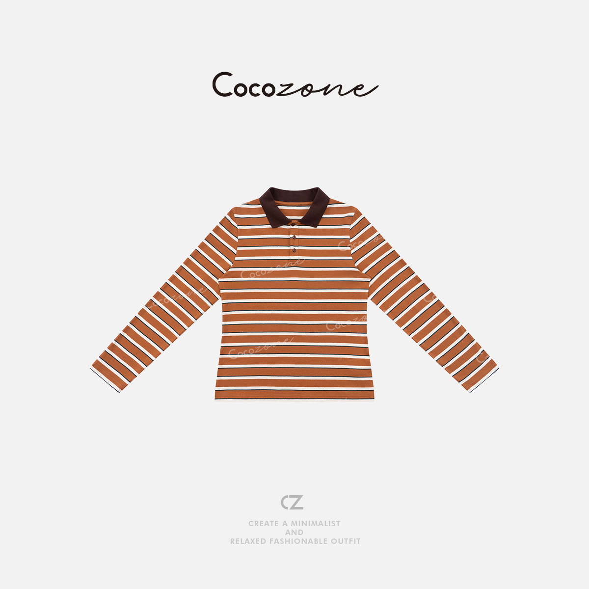 COCO ZONE 刘一一“桔白条”柔软亲肤修身独特感长袖T恤 CD2A1487