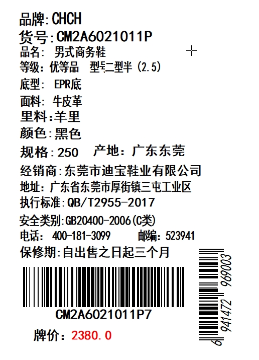 CHCH平衡鞋牛皮革正装商务男鞋时尚百搭运动休闲鞋CM2A6021