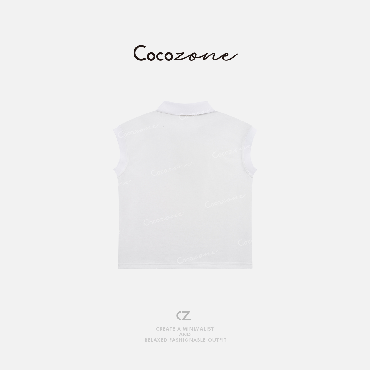 COCO ZONE 刘一一 经典polo领美式精致绣标无袖T恤 CD2A1436