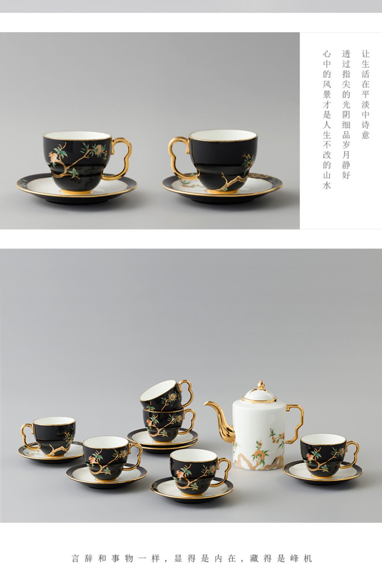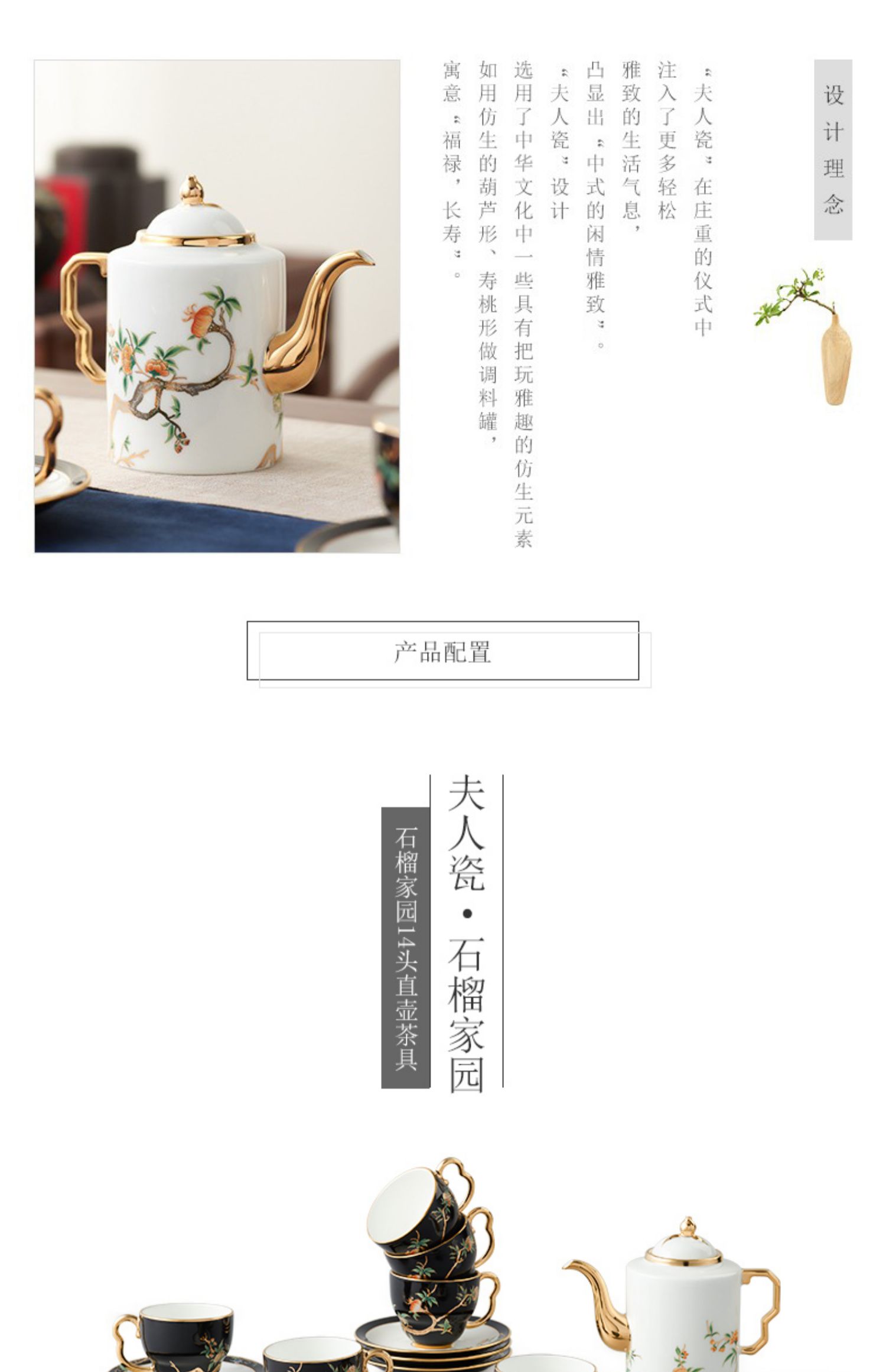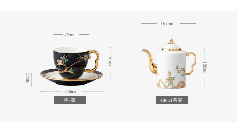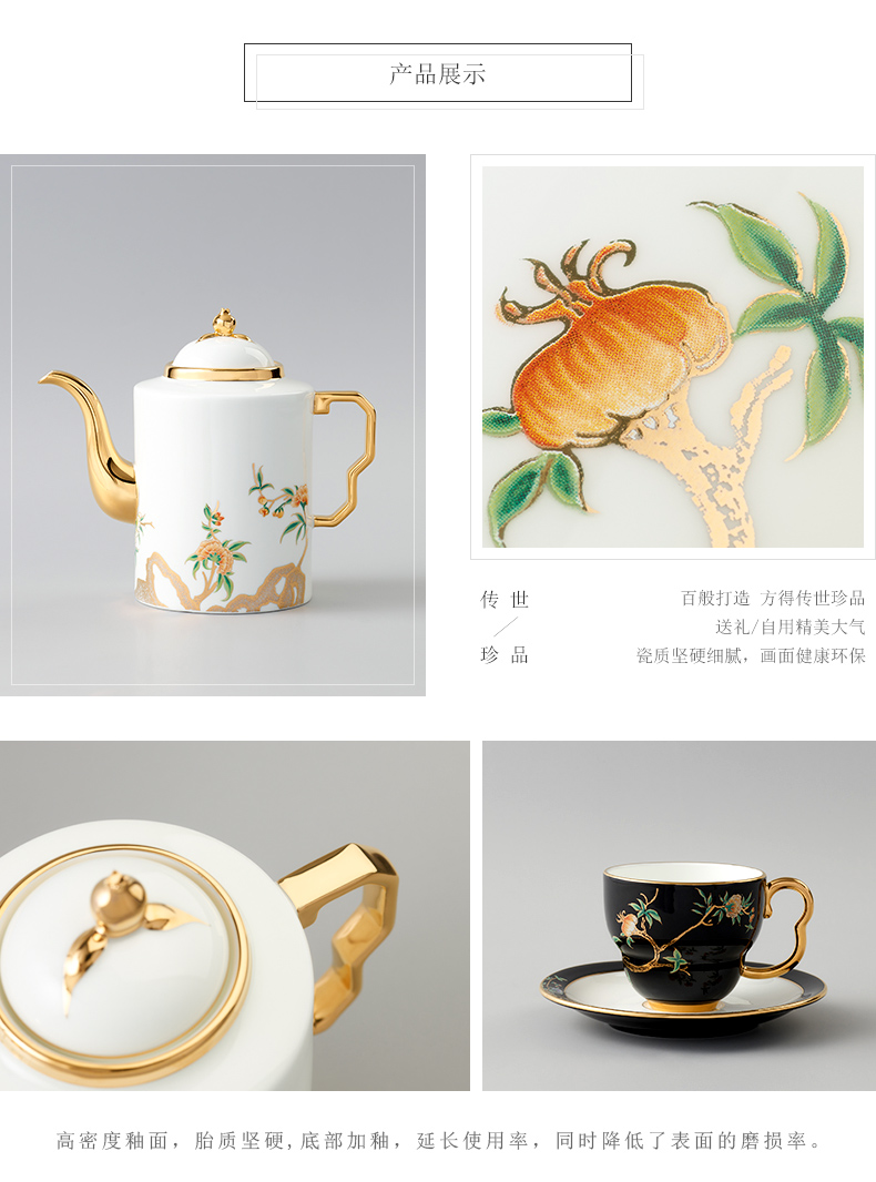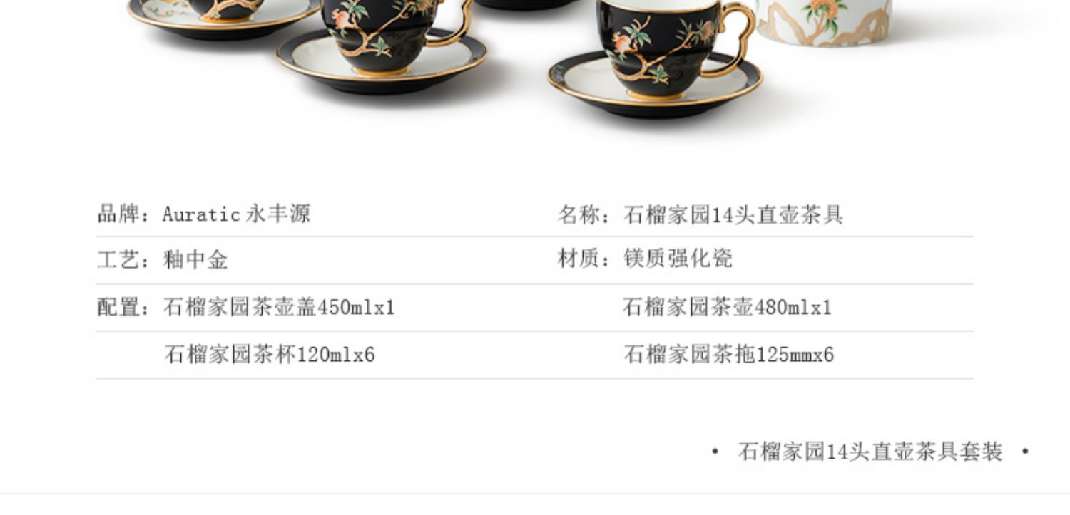 永丰源 石榴家园14头家用咖啡具 陶瓷描金茶具直壶茶杯碟 礼品