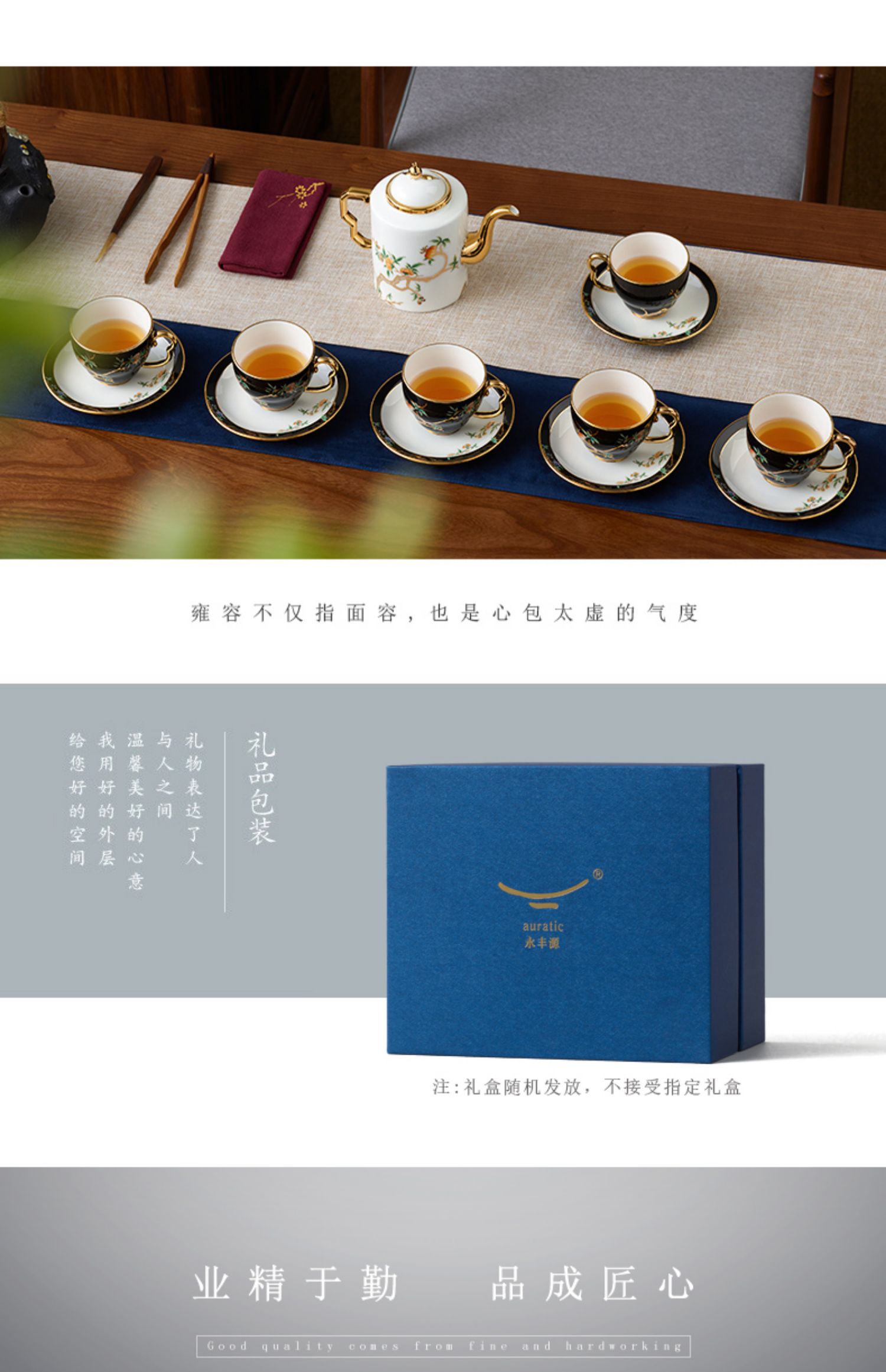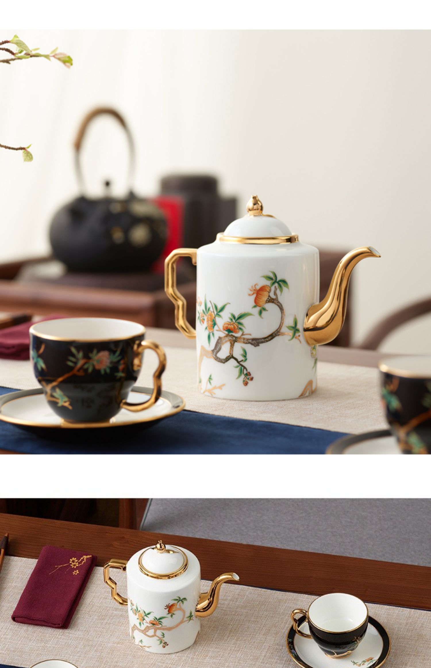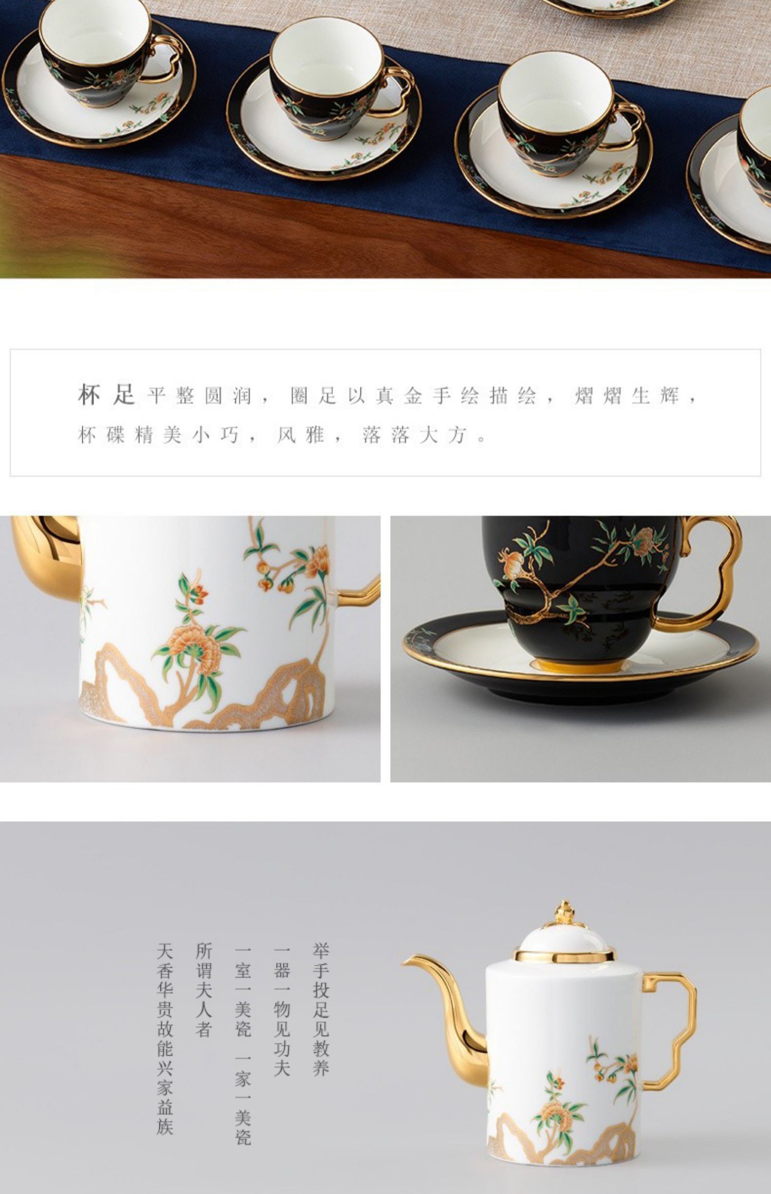 永丰源 石榴家园14头家用咖啡具 陶瓷描金茶具直壶茶杯碟 礼品