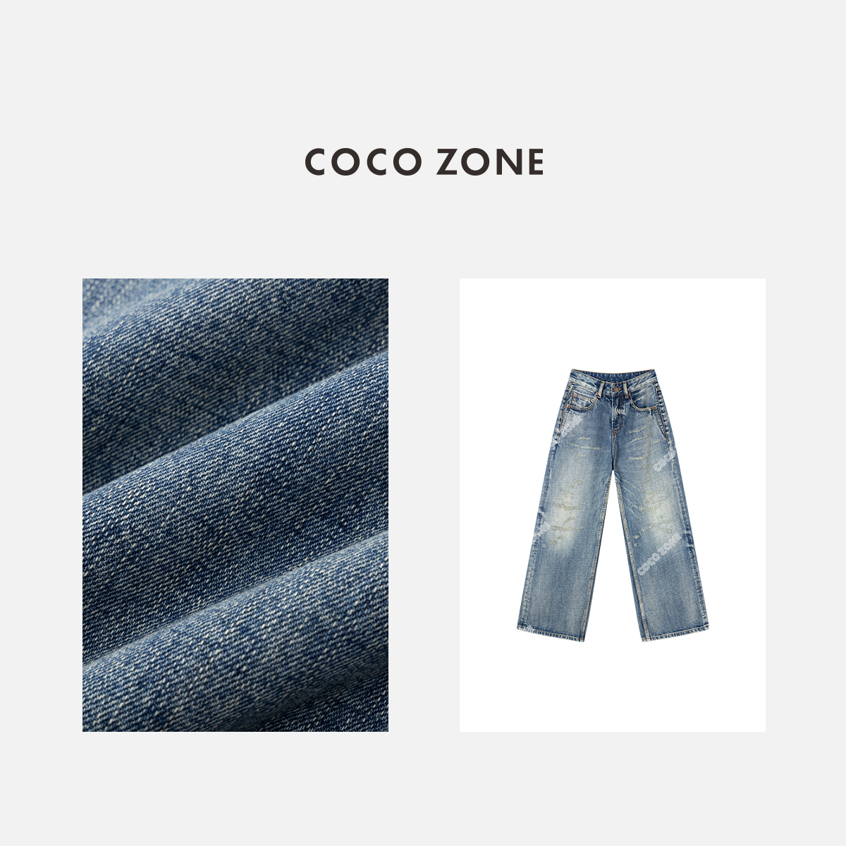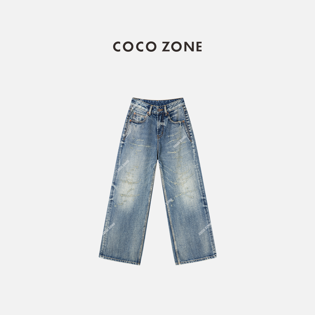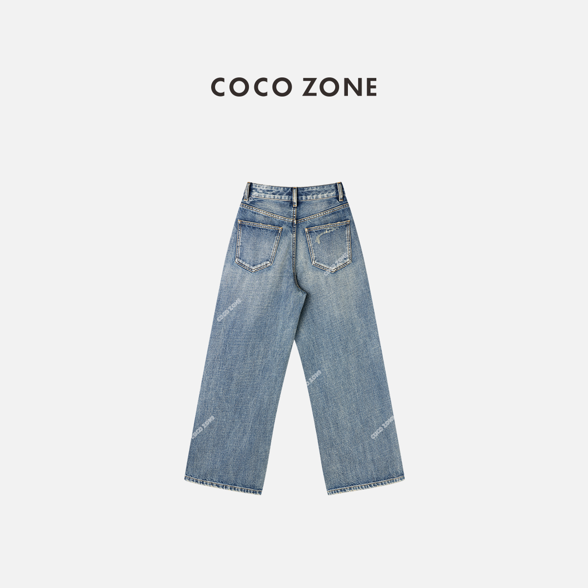 COCO ZONE 复古100棉磨破牛仔裤显瘦直筒裤CC1D2406