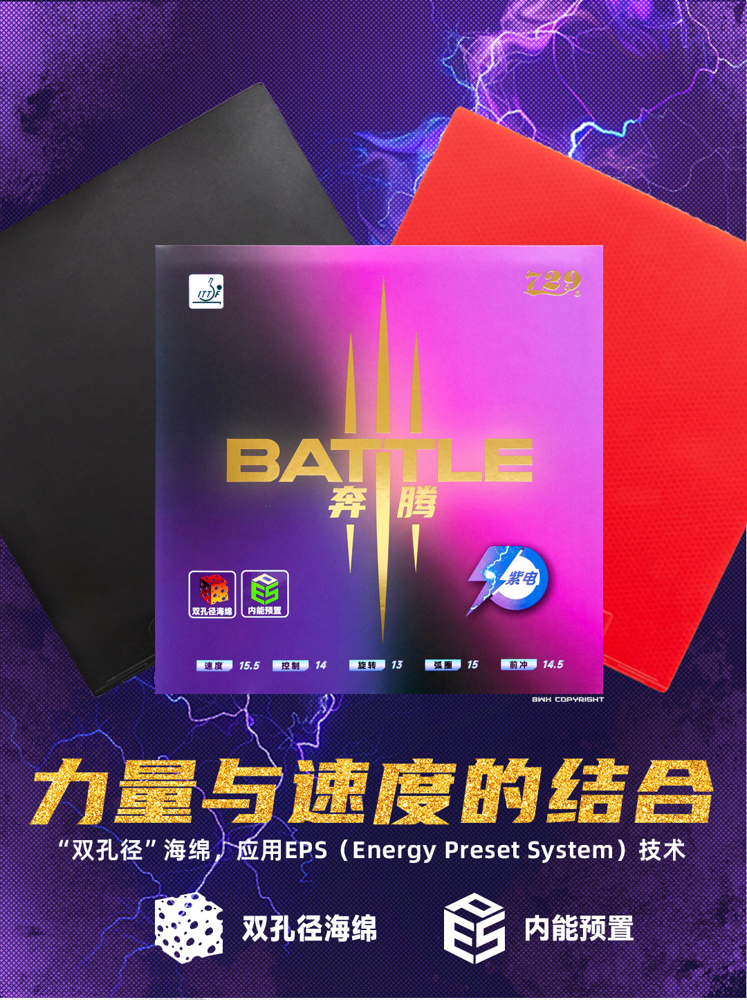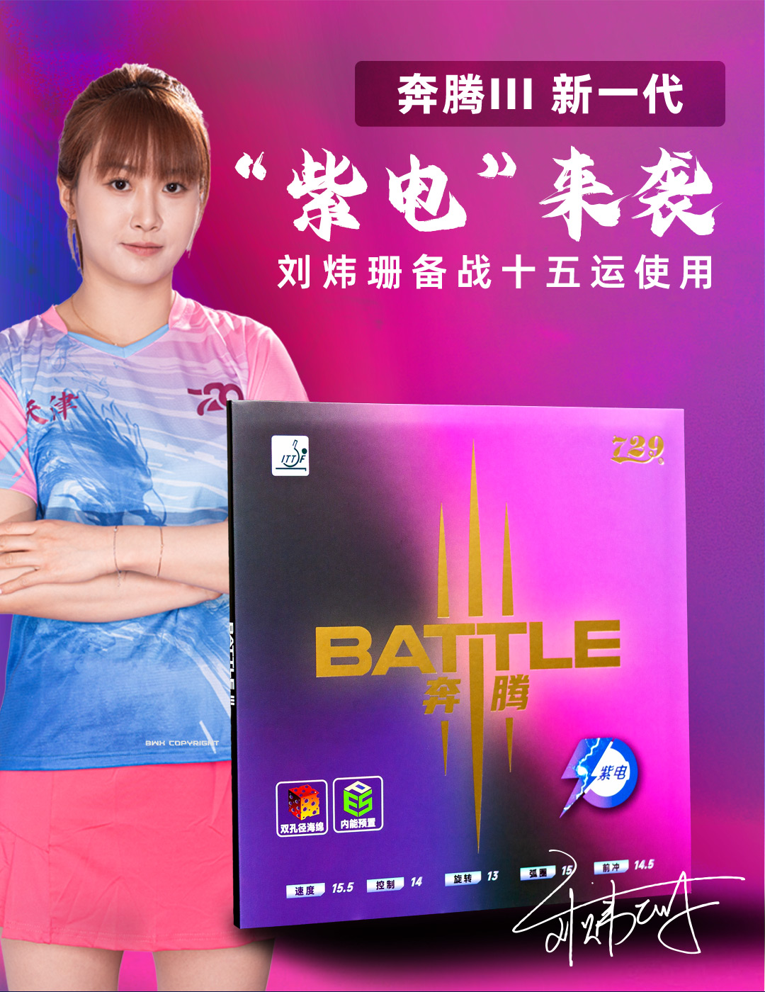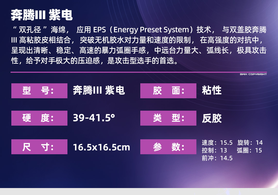[新品首发] 友谊729 奔腾III紫电粘性乒乓球套胶 紫海绵粘性反胶