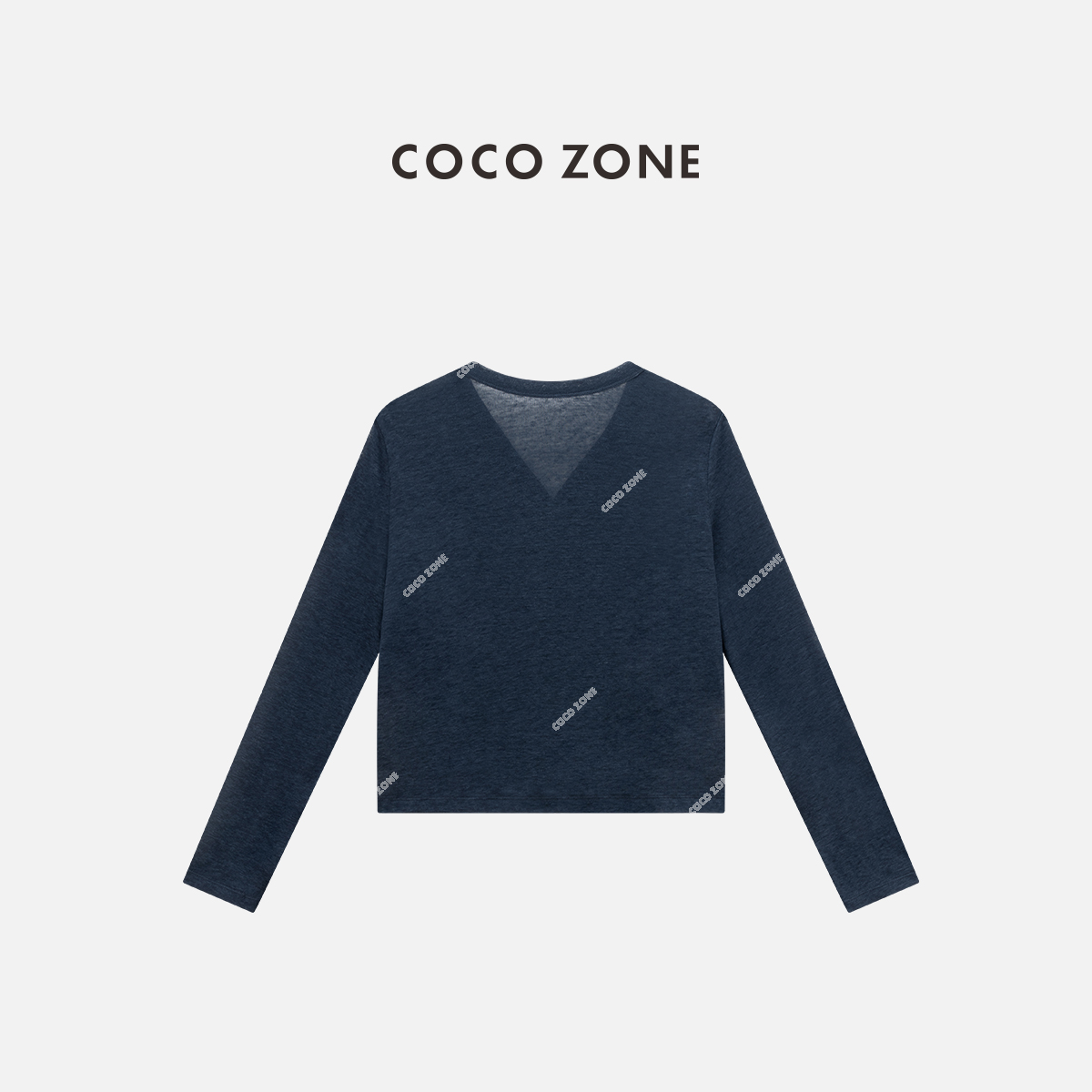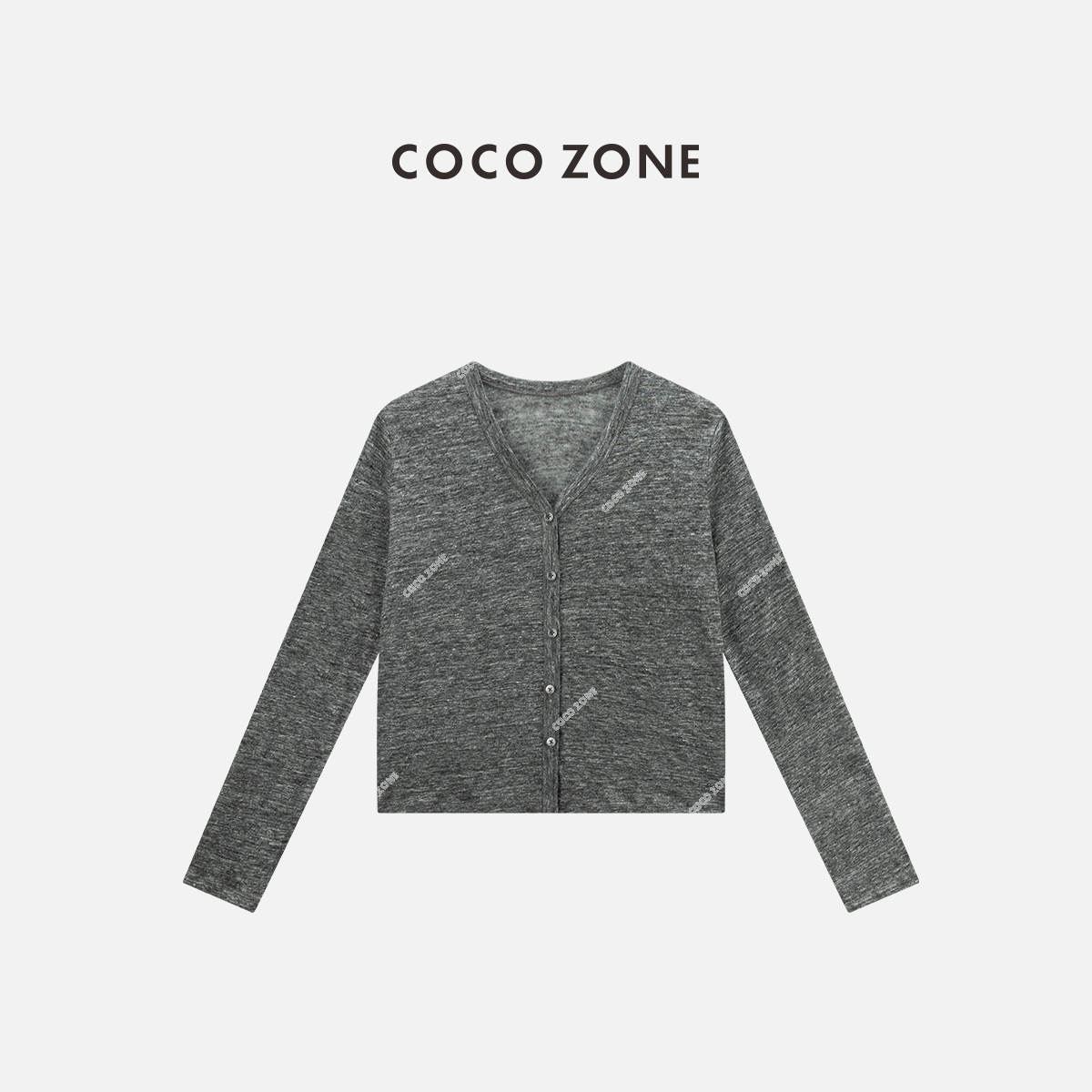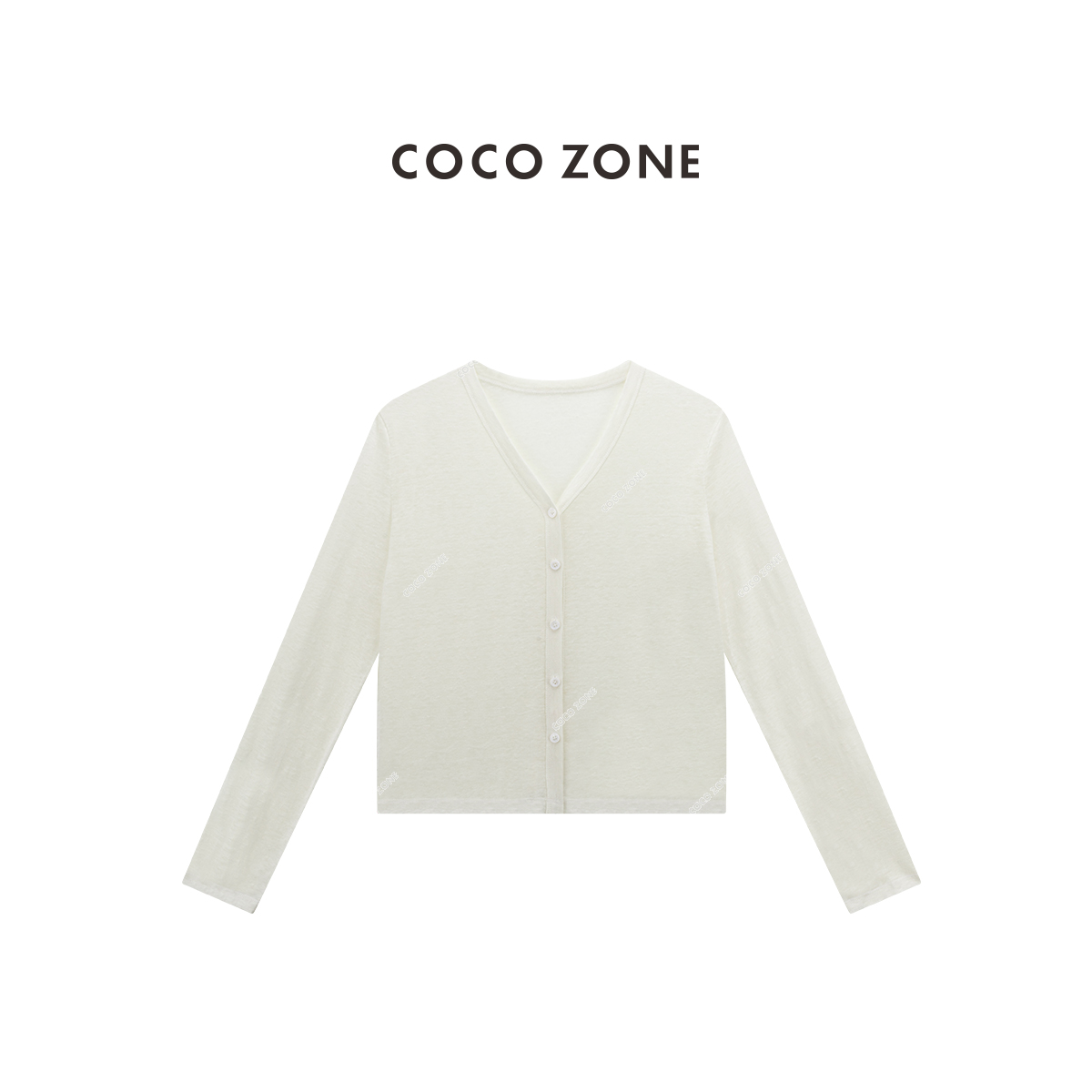 COCO ZONE 100亚麻薄款V领针织开衫长袖上衣CC1B1537