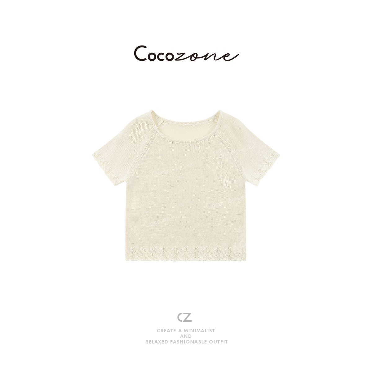 COCO ZONE 刘一一2025新款设计感拼接绞花短款针织衫CD2A0197