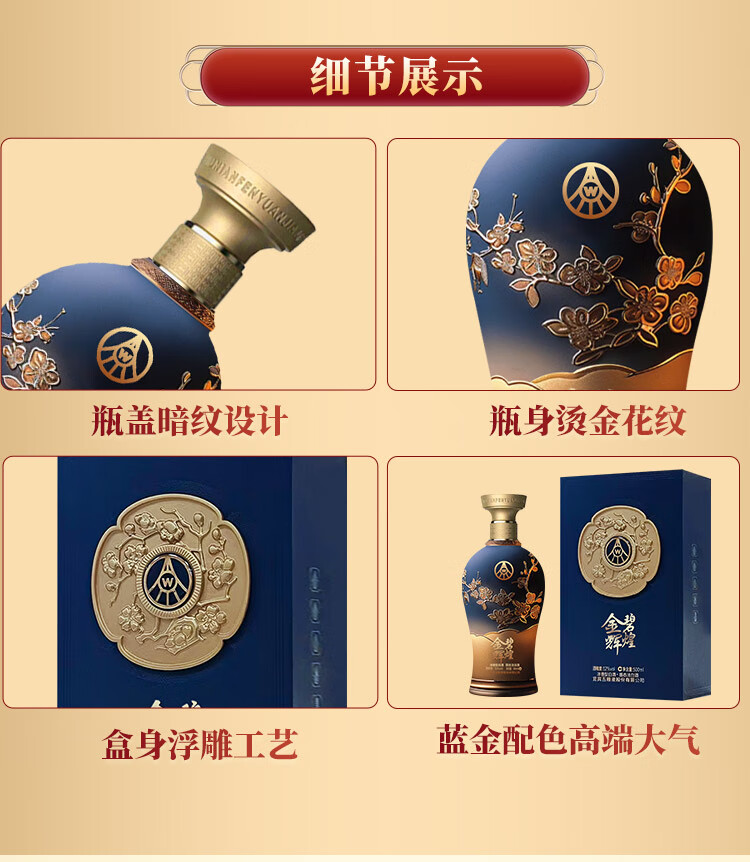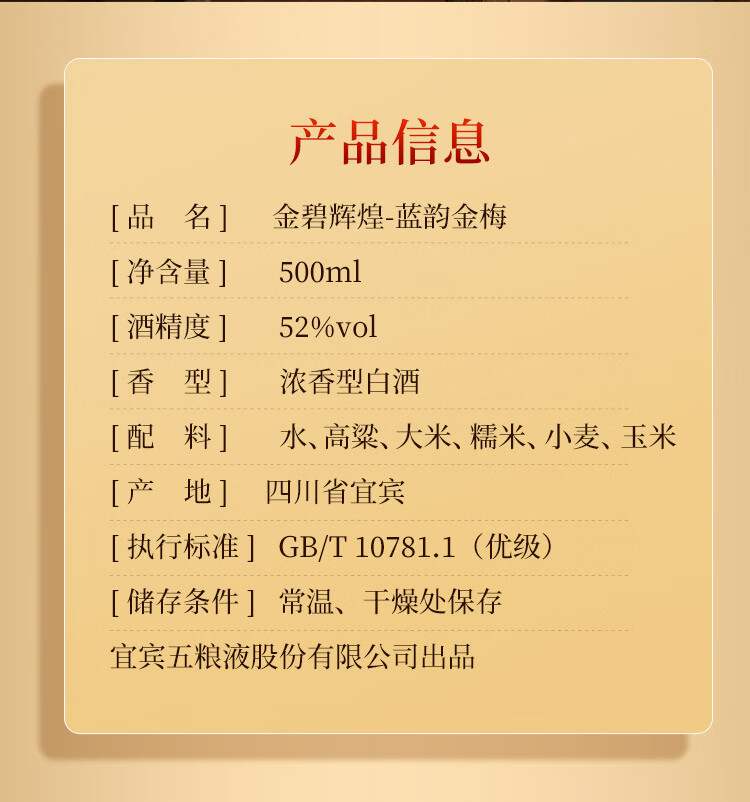 五粮液 52度 金碧辉煌 蓝韵金梅(单瓶装)