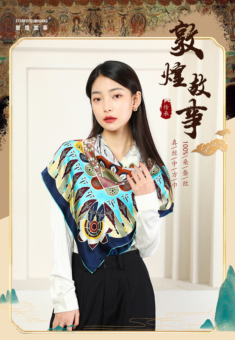 敦煌故事桑蚕丝春秋印花送礼中国风女丝巾