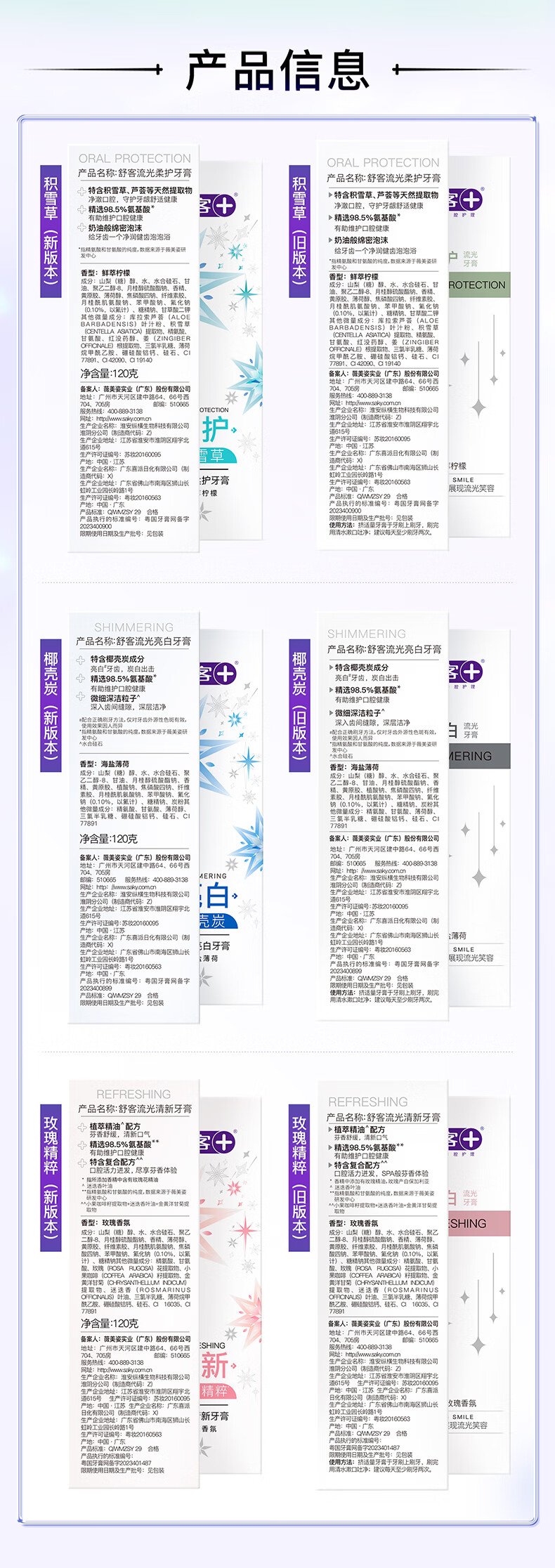 舒客氨基酸流光美白牙膏 120g(新旧包装随机发货)