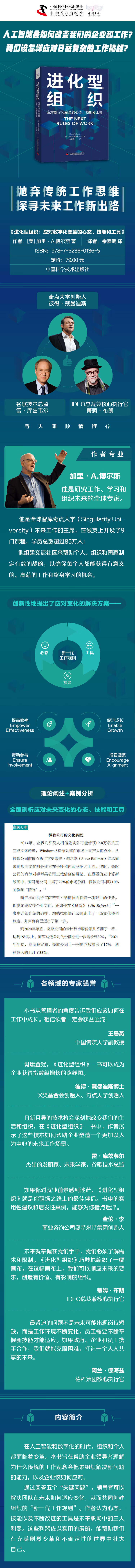 在人工智能和数字化的时代,组织和个人都面临着变革。本书旨在帮助企业领导者理解为什么传统的工作观念会拖累组织解决新问题的能力,以及企业该如何应对。通过回答五个关键问题”,领导者可以解决团队在未来如何适应变化,从而共同创建组织的“新一代工作规则”。作者认为心态、技能以及不断改进的工具是未来职场中的三大利器。这些利器佐以实用的策略,能帮助我们在充满剧烈变革和不确定性的世界中壮大自己。