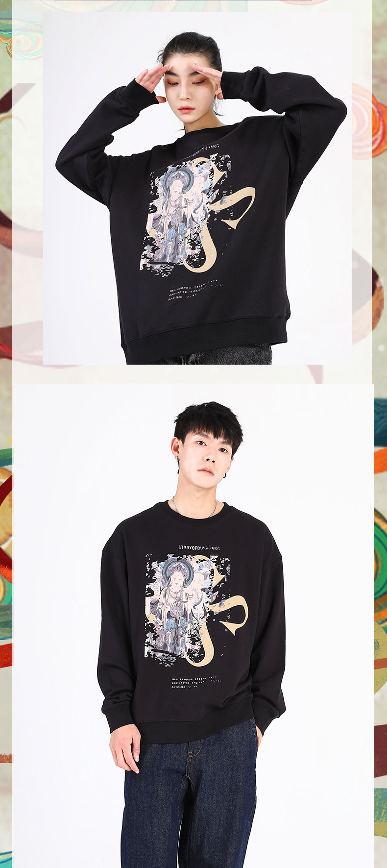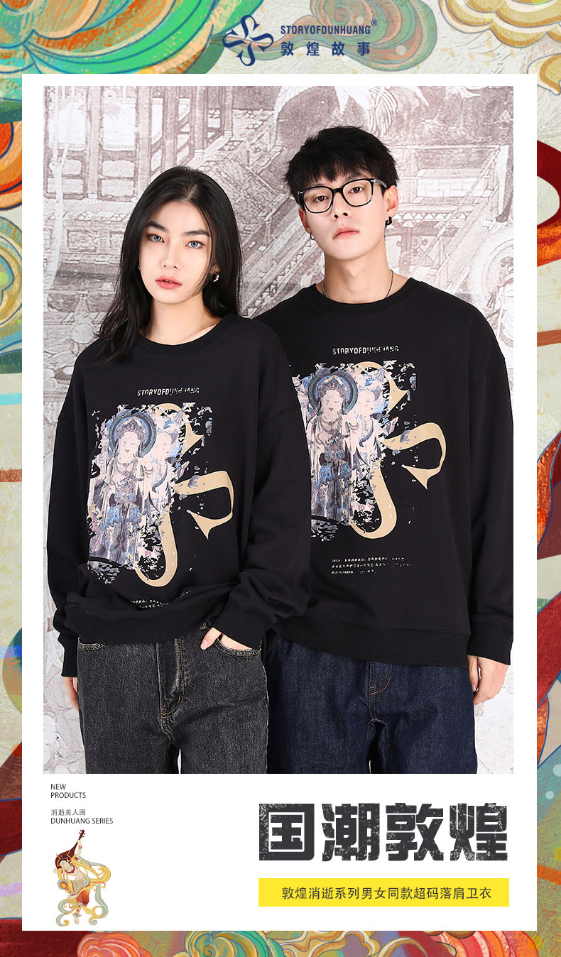 敦煌故事长袖t恤宽松版新棉时尚百搭夏青年
