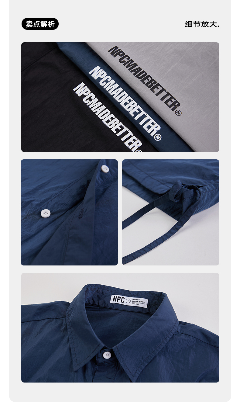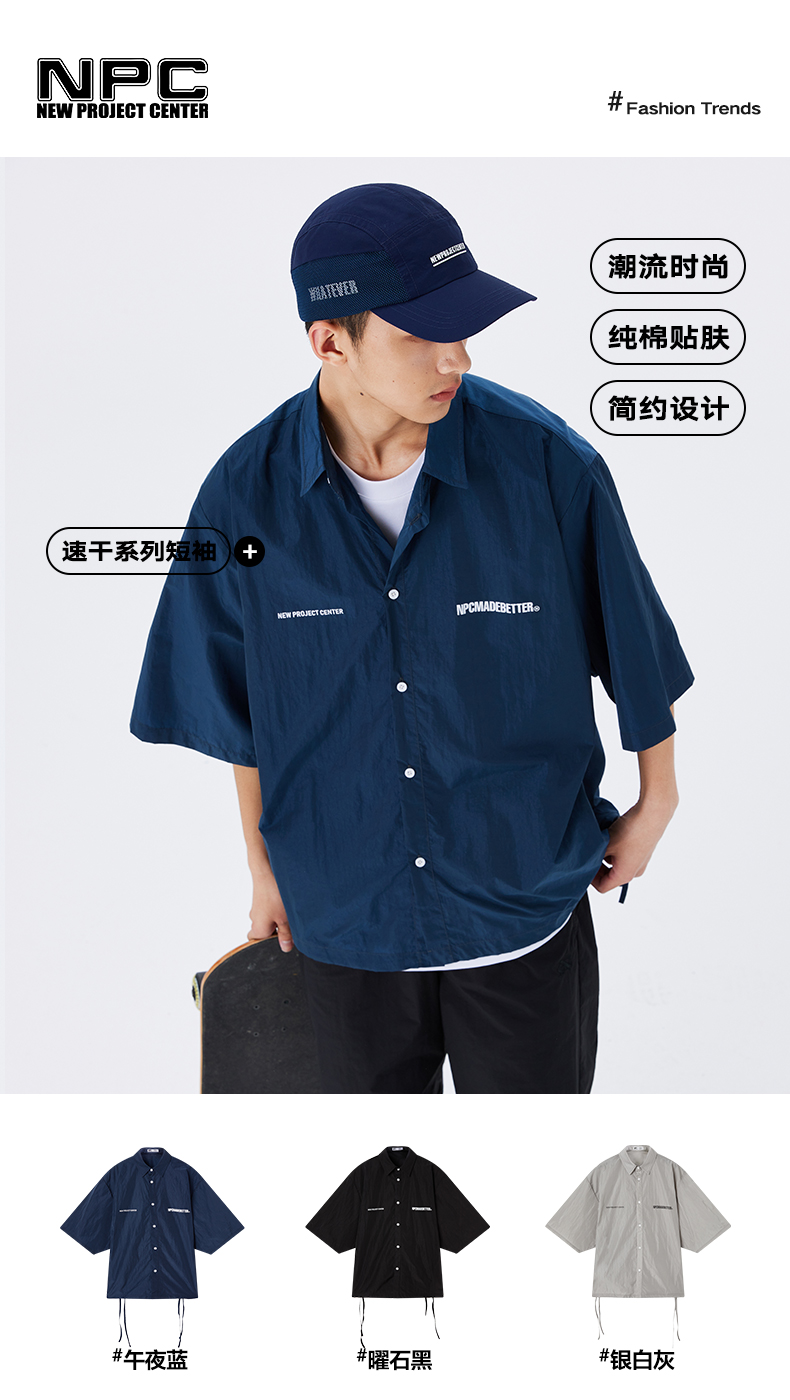 NPC潮牌防水速干五分袖衬衫舒适日常短袖夏季透气潮流NP33SH32