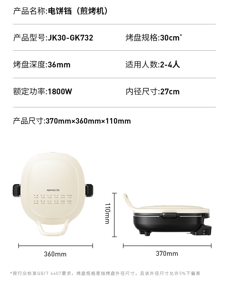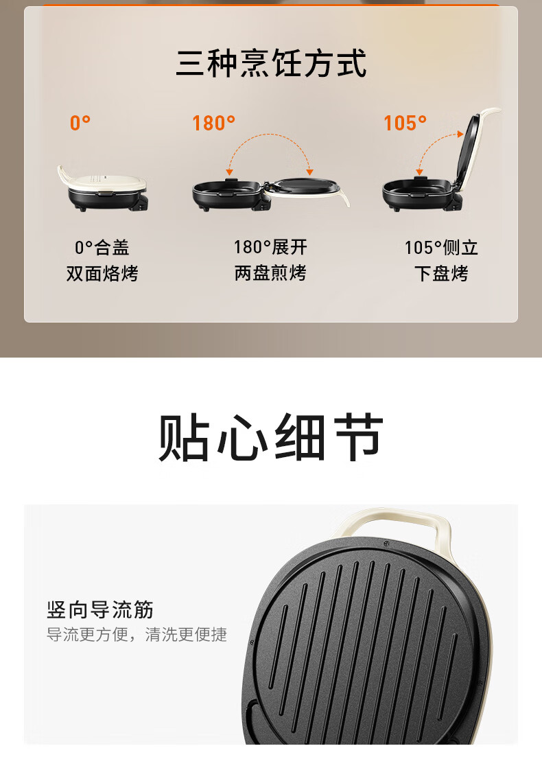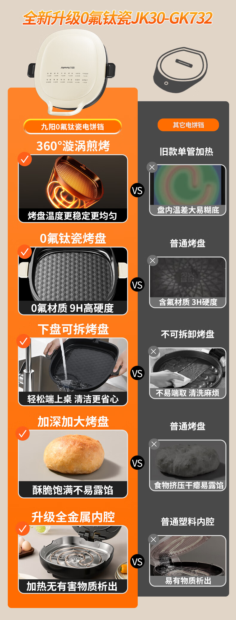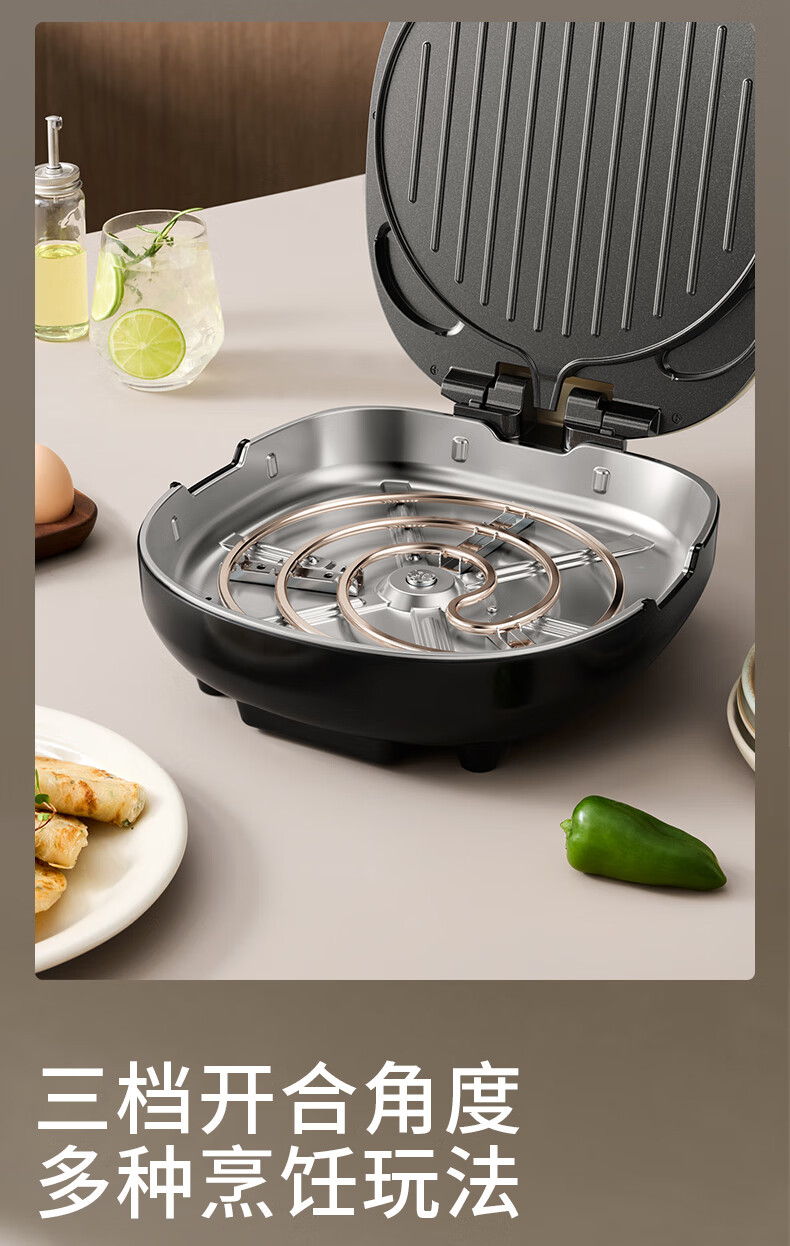 九阳电饼铛0氟钛瓷双面加热下盘可拆洗煎烤机家用烙饼早餐薄饼机