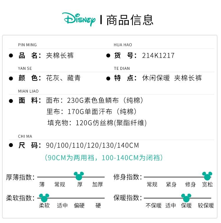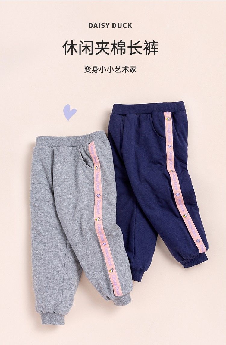 迪士尼女童宝宝夹棉裤子新款冬加厚棉裤儿童运动长裤214K1217