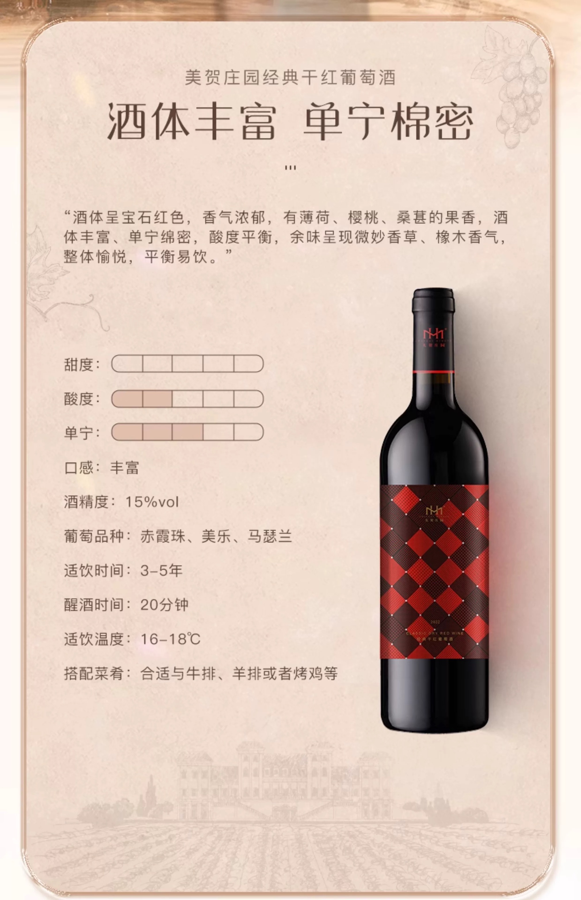 美贺庄园经典干红葡萄酒 国产红酒 宁夏贺兰山 高档 送礼佳品~