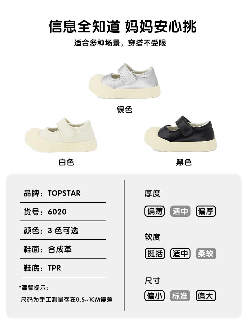 TOPSTAR2024秋季新款软底儿童皮鞋6020
