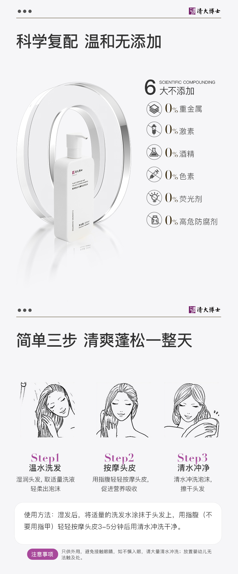 【清大博士洗发水】净澈油痒屑 清大博士植物复合毛囊清洁洗发水,针对油头/头屑头痒/断发脱发,全家适用,清华大学发货!300g/瓶