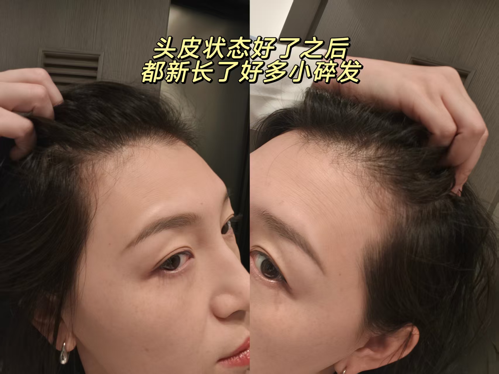 我已经用了快两个月了,最直观的感受是:头发没那么爱出油了,之前两天就要洗一次,现在三天不洗状态业不错!而且洗完之后头发非常的蓬松,视觉上感觉发量都多了。还有一点,最惊喜的是,我竟然长出来了好多小碎发!可能在PQQ和它的协同作用下,我的头发真的越来越好了。