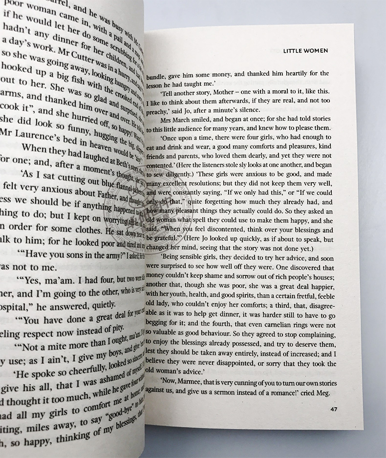 Little Women《小妇人》是一部大众文学中的经典励志作品,自出版以来,一直受到热烈的欢迎。曾先后被改编成戏剧、拍成电影,在世界各地上映、演出,可见其具有独特的魅力。美国图书协会、美国教育协会两会代表选入100种乡村小学的经典书籍,其中精选25种,《小妇人》列居25种的榜首。世界上已有数十种不同语言的译本,适合各文学爱好者品读。本书为HarperPress推出的英文原版。