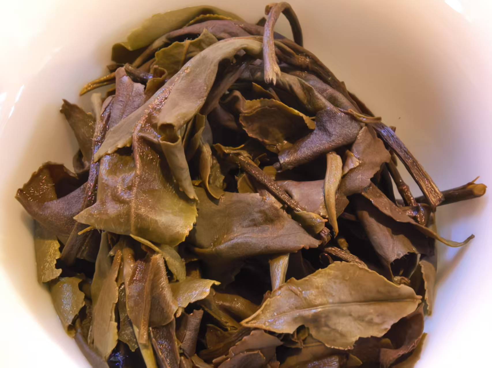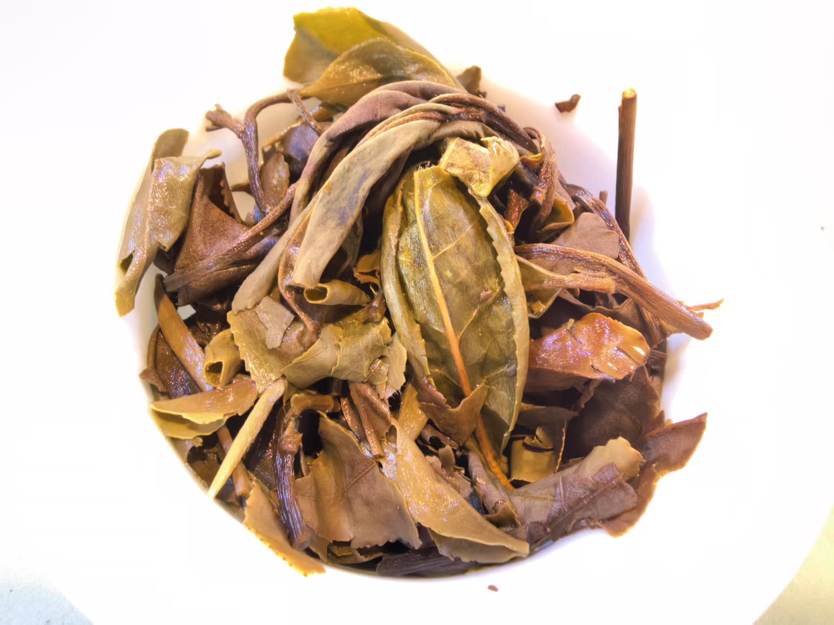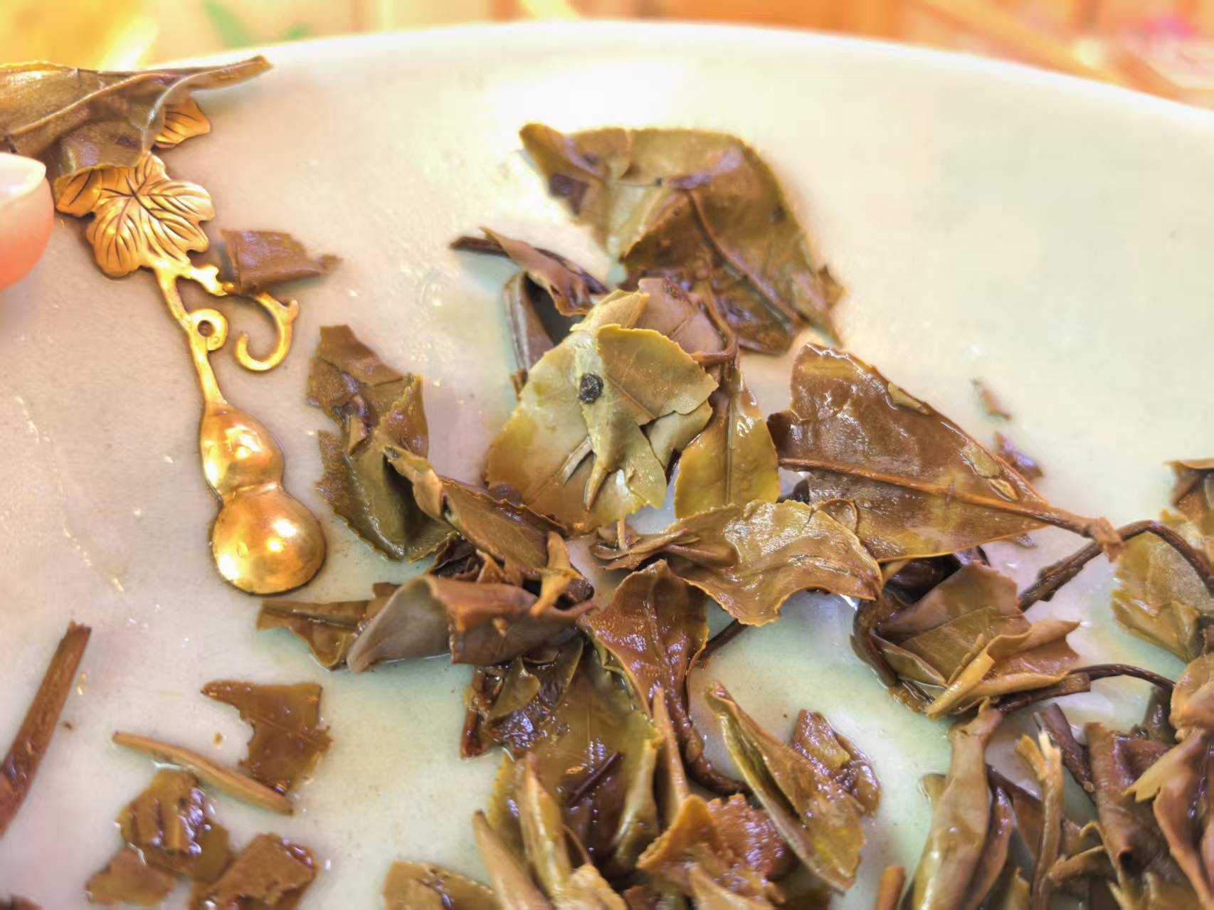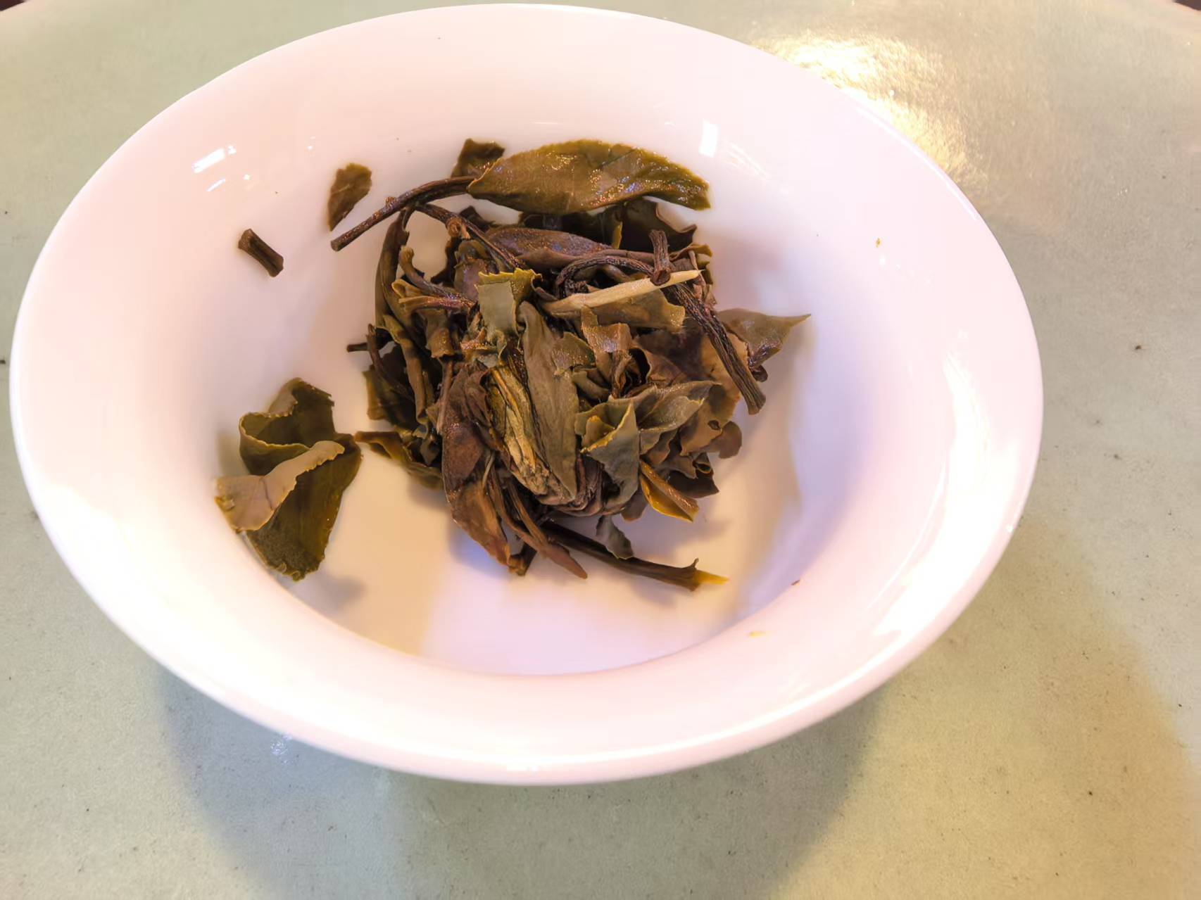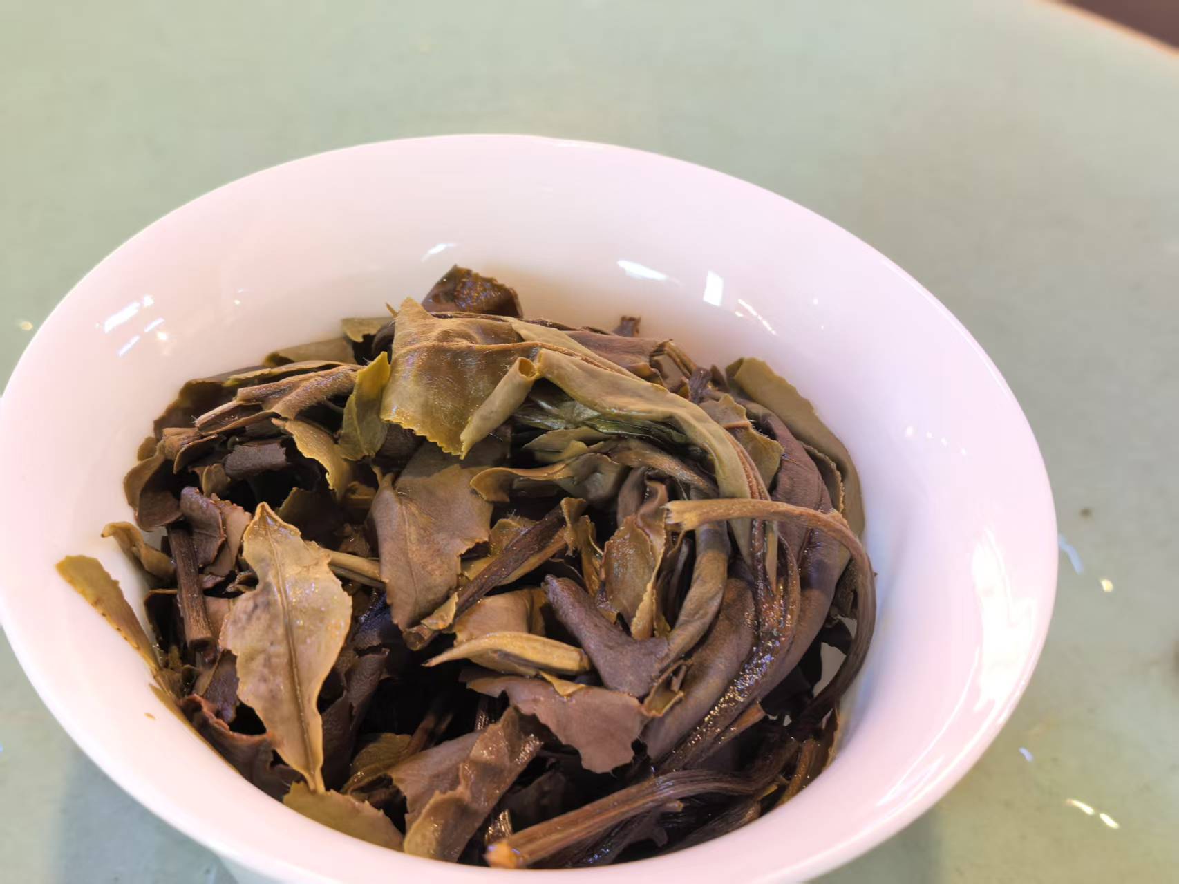 这是咱们寿眉的叶底,如果要变到褐色,需要靠时间沉淀,用岁月的魔力把香气和口感进一步提升,其他任何“小手段”都只能是空有其形而无灵魂;这也是很多真正的老茶值钱且好喝的原因。