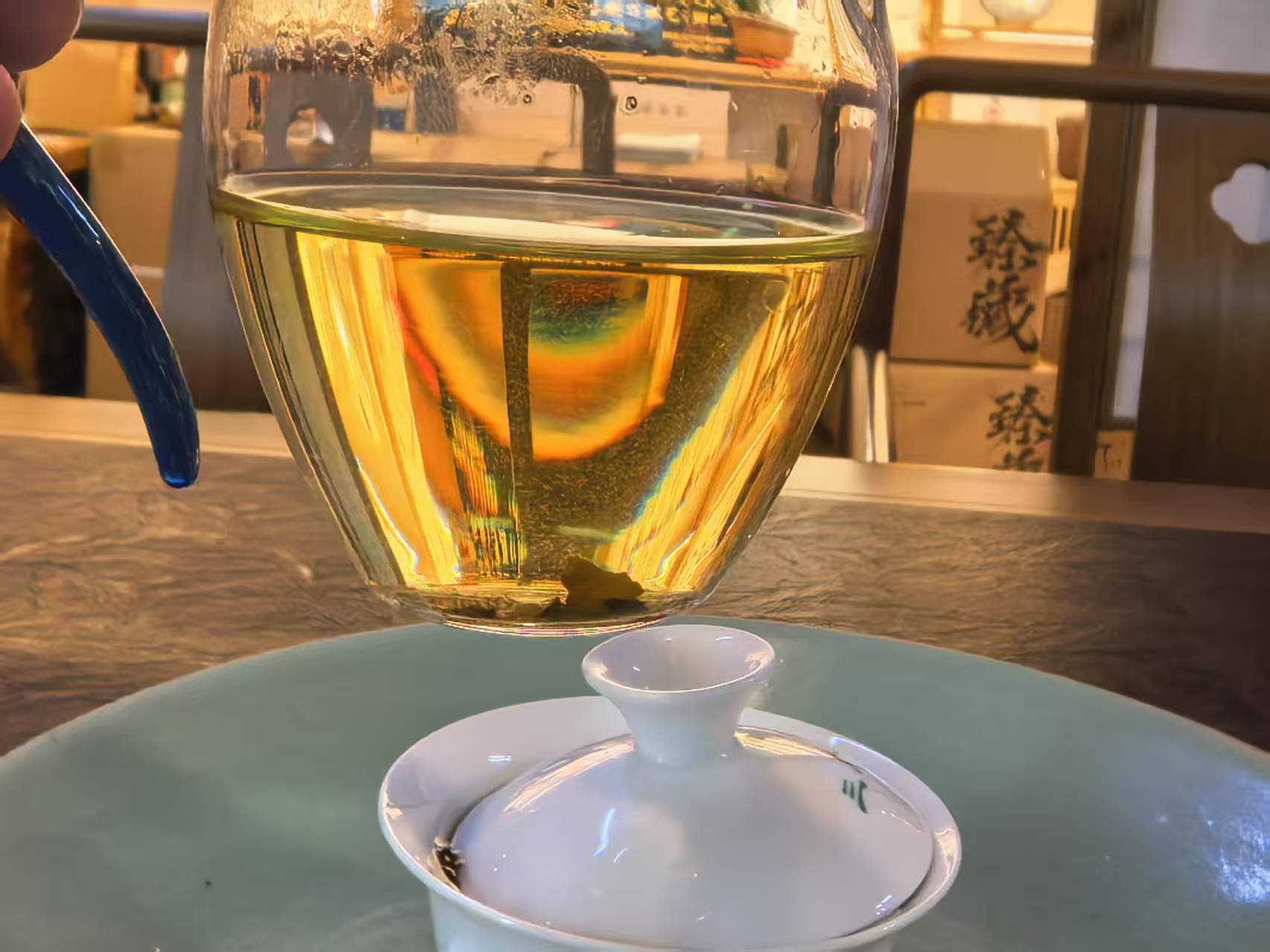 第一道,看着汤色,就是很经典的明亮有光泽,整体金黄感;