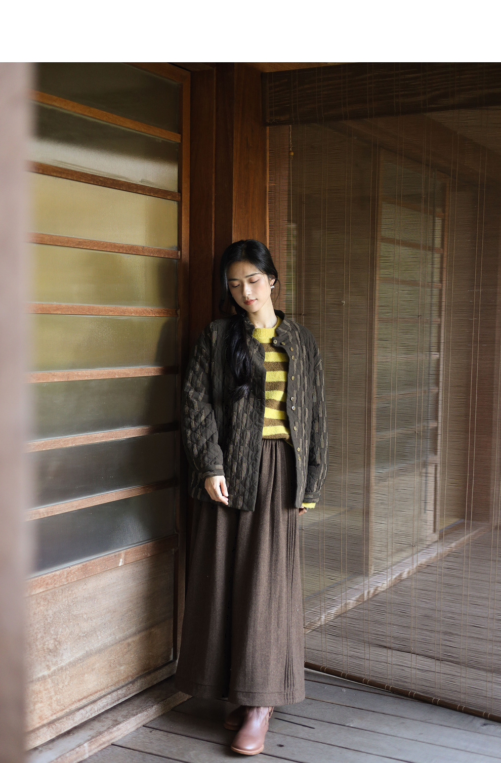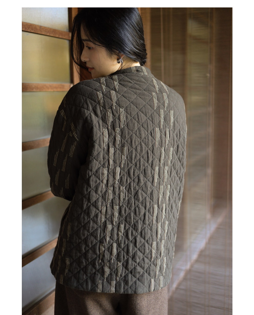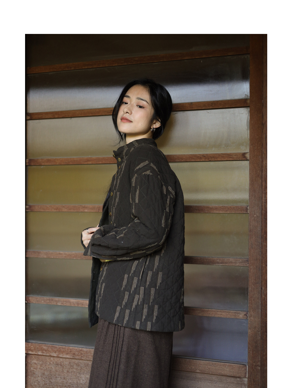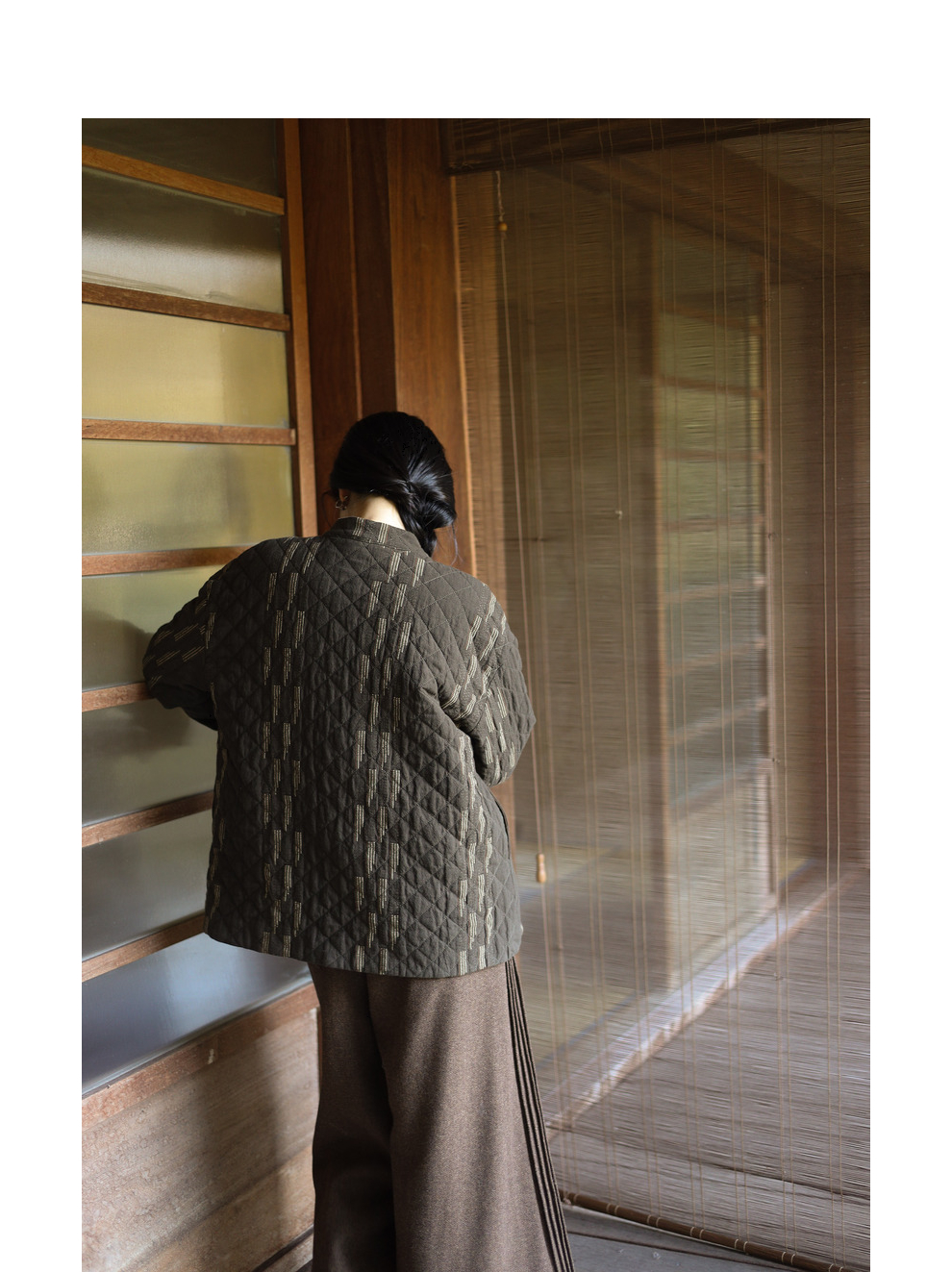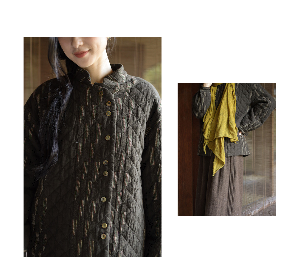 绽放982/2023冬季墨绿色中式复古小立领开襟长袖夹棉衬衫式棉服