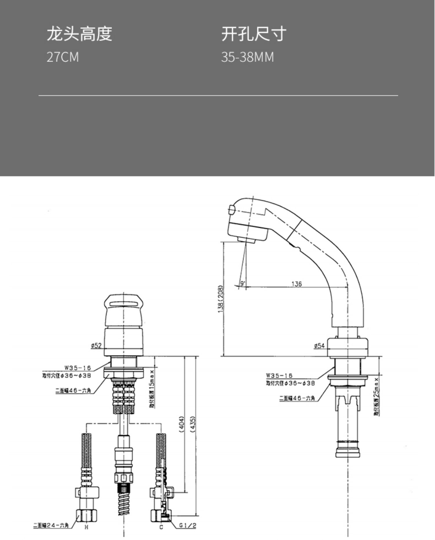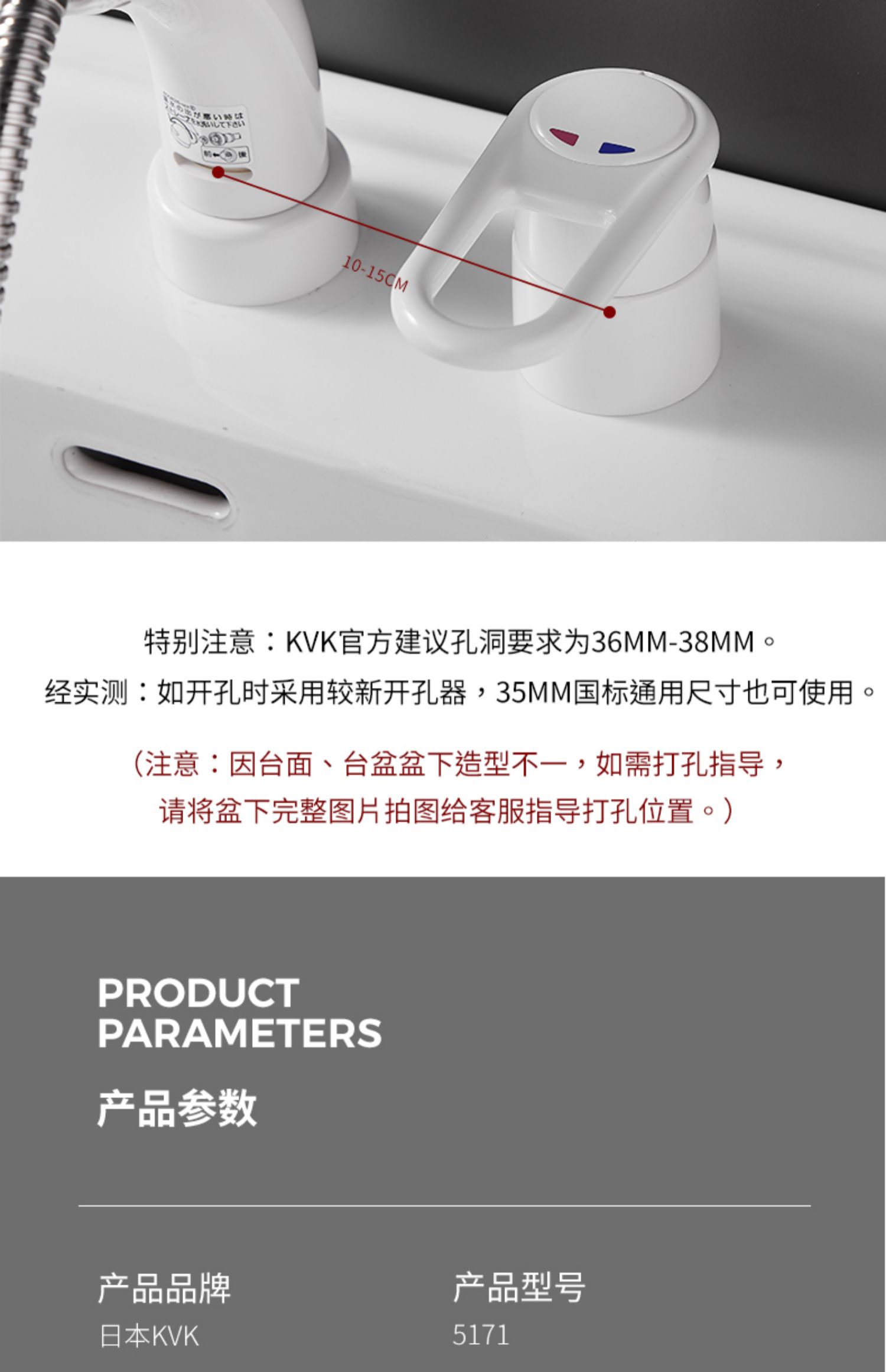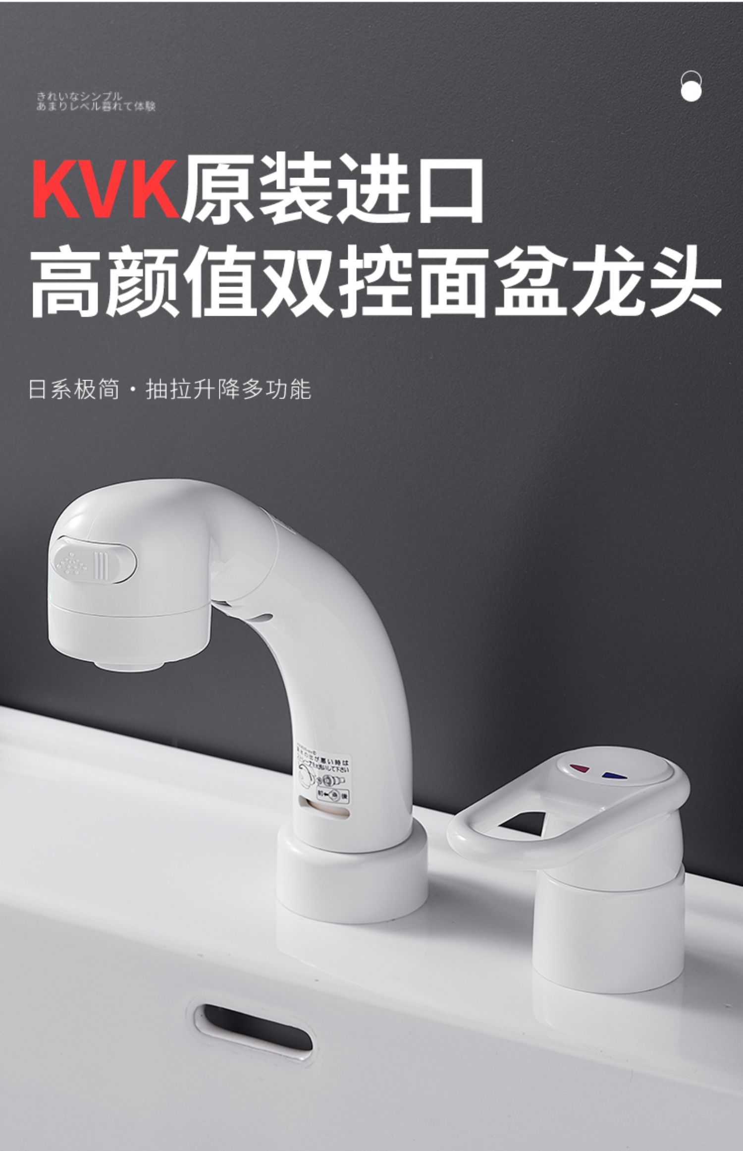 KVK 日本进口挂冷热水混合双孔浴室柜洗面化妆水龙头 KM5171