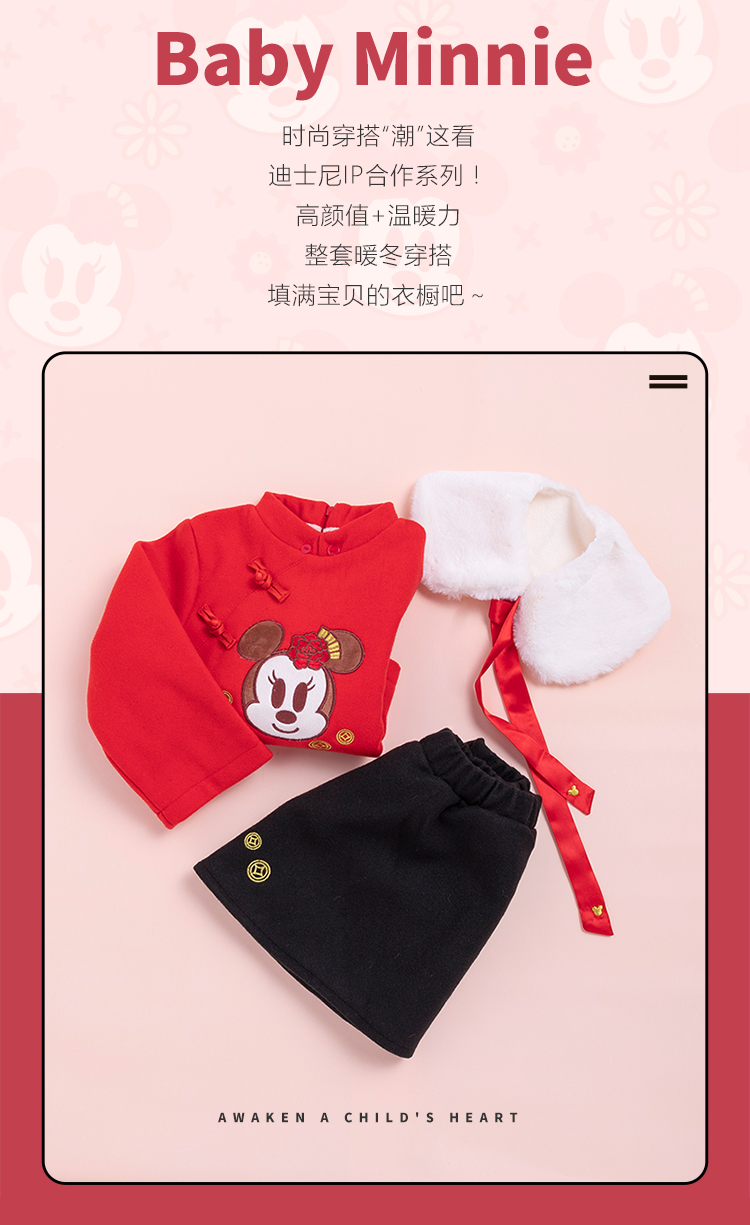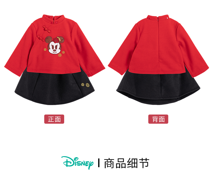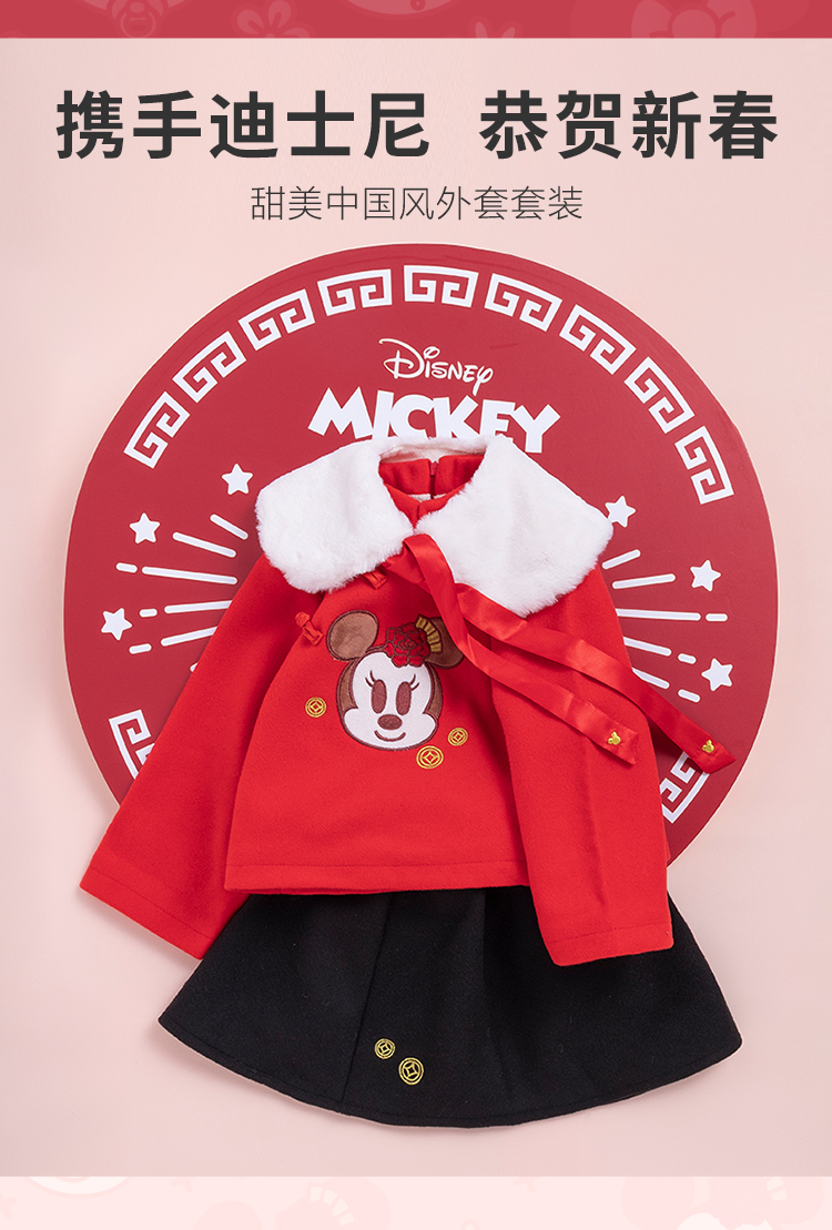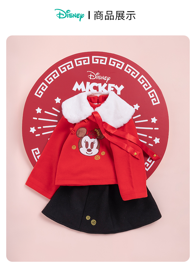 迪士尼童装女童保暖加绒恭贺新春米妮系列卫衣套装中国风冬新品214T1286