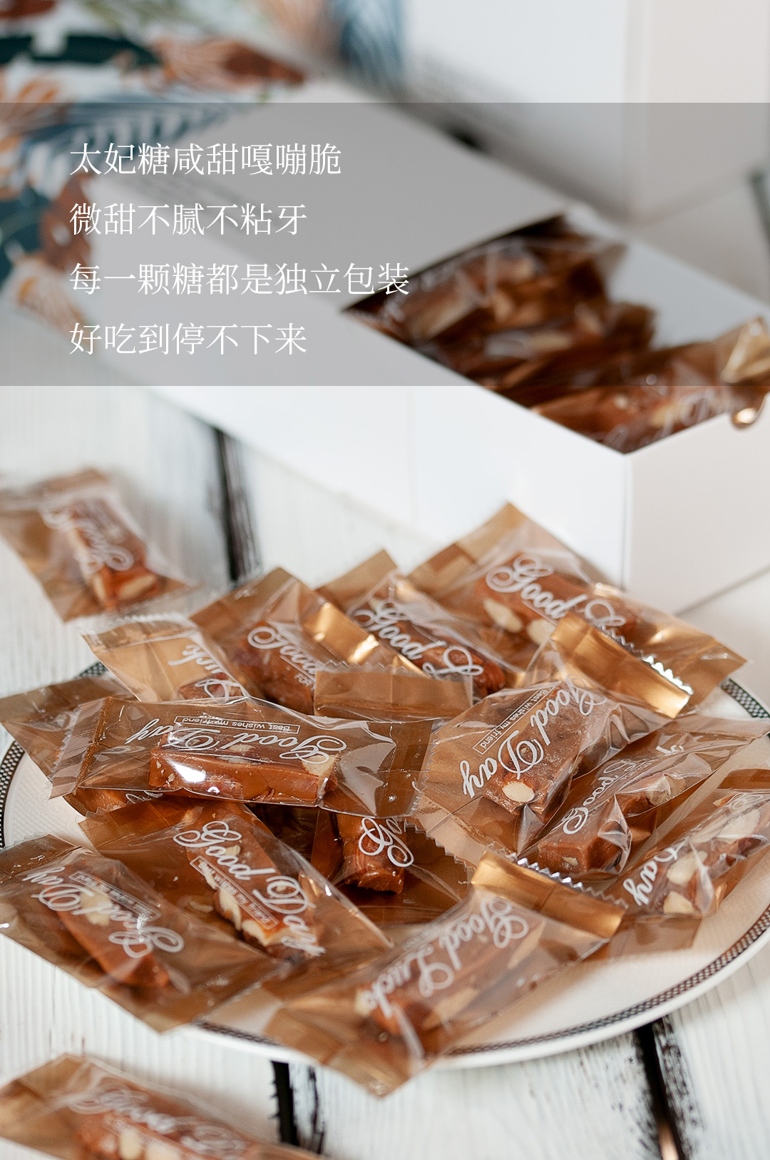 太妃糖采用独立包装,一盒约200g