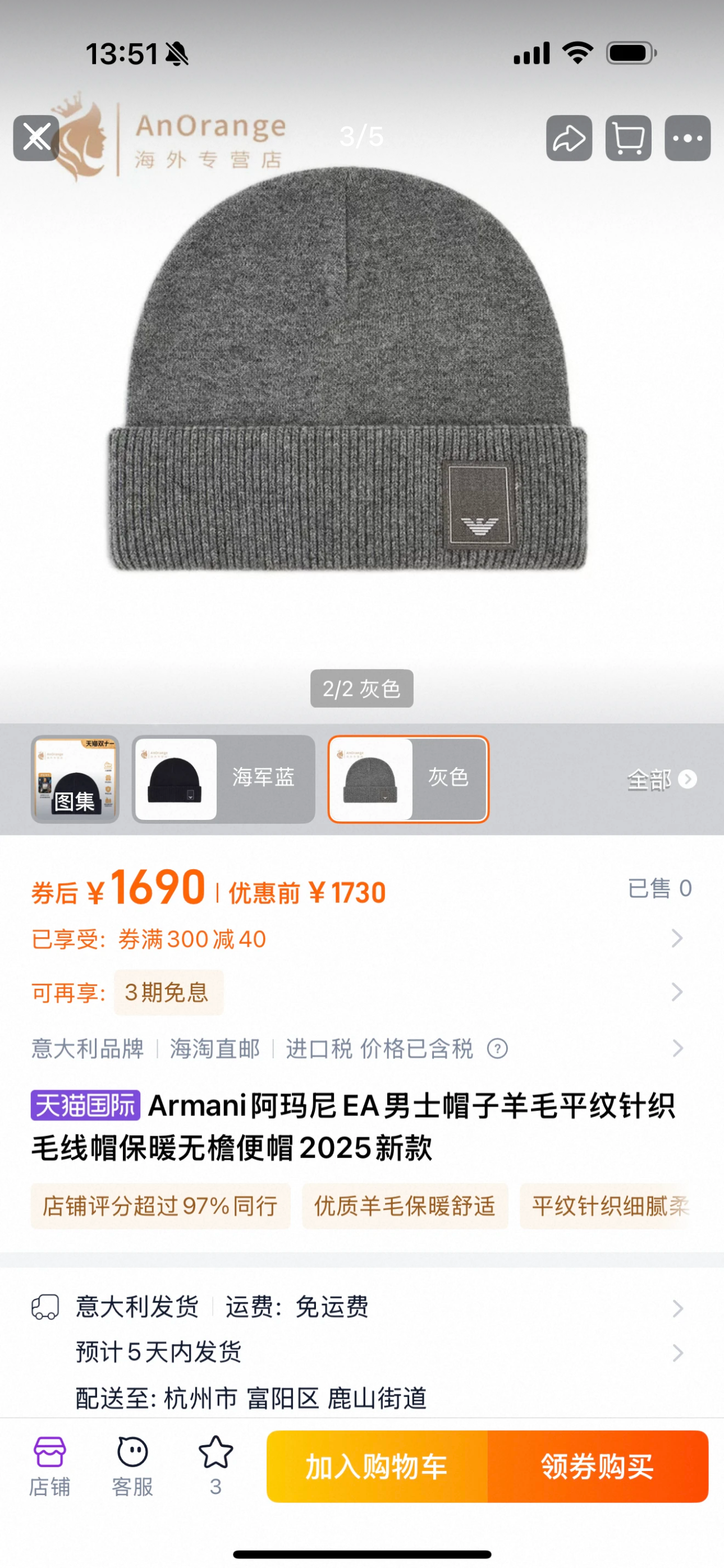 纯原单!阿玛尼秋冬新款羊毛混纺休闲针织毛线帽冷帽