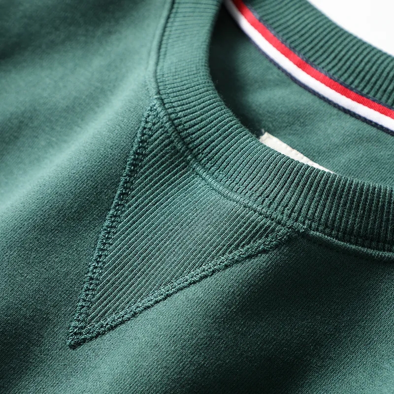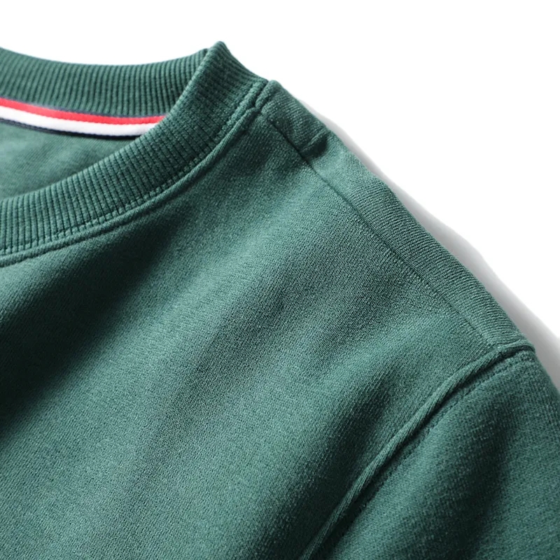 圆领套头设计,简约方便,领口袖口及下摆防泄螺纹拼接,久洗不会变形!